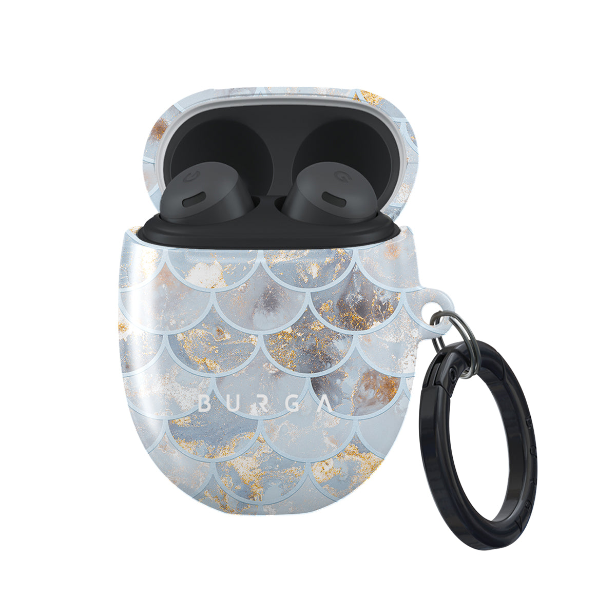 Mermaid reimagined. Take this popular and beloved mermaid pattern of our Google Pixel Buds Pro case cover inspired by all the stories about mermaids. Add some cute charm to the melodies of a dreamy mind and keep your Google Pixel Buds Pro safe and sound. Our case fits perfectly snug around Google Pixel Buds Pro . “Like a glove!” one might say. And it won’t disrupt the wireless charging capabilities of the newer model. There’s even an LED light indicator to prove it (don’t worry, wired charging still works, too). When fitted, the BURGA case will protect the delicate Google Pixel Buds Pro case beneath it from scratches, bumps, and drops while remaining scratch-free itself. Our signature design pattern prints are High Quality, and will never peel or fade away- thanks to our unique printing technology. And finally, a handy carabiner is there to make your life easier and more convenient: just snap it around your keys or belt loop and tackle the day head-on. Your music is right there by your side when you need it.