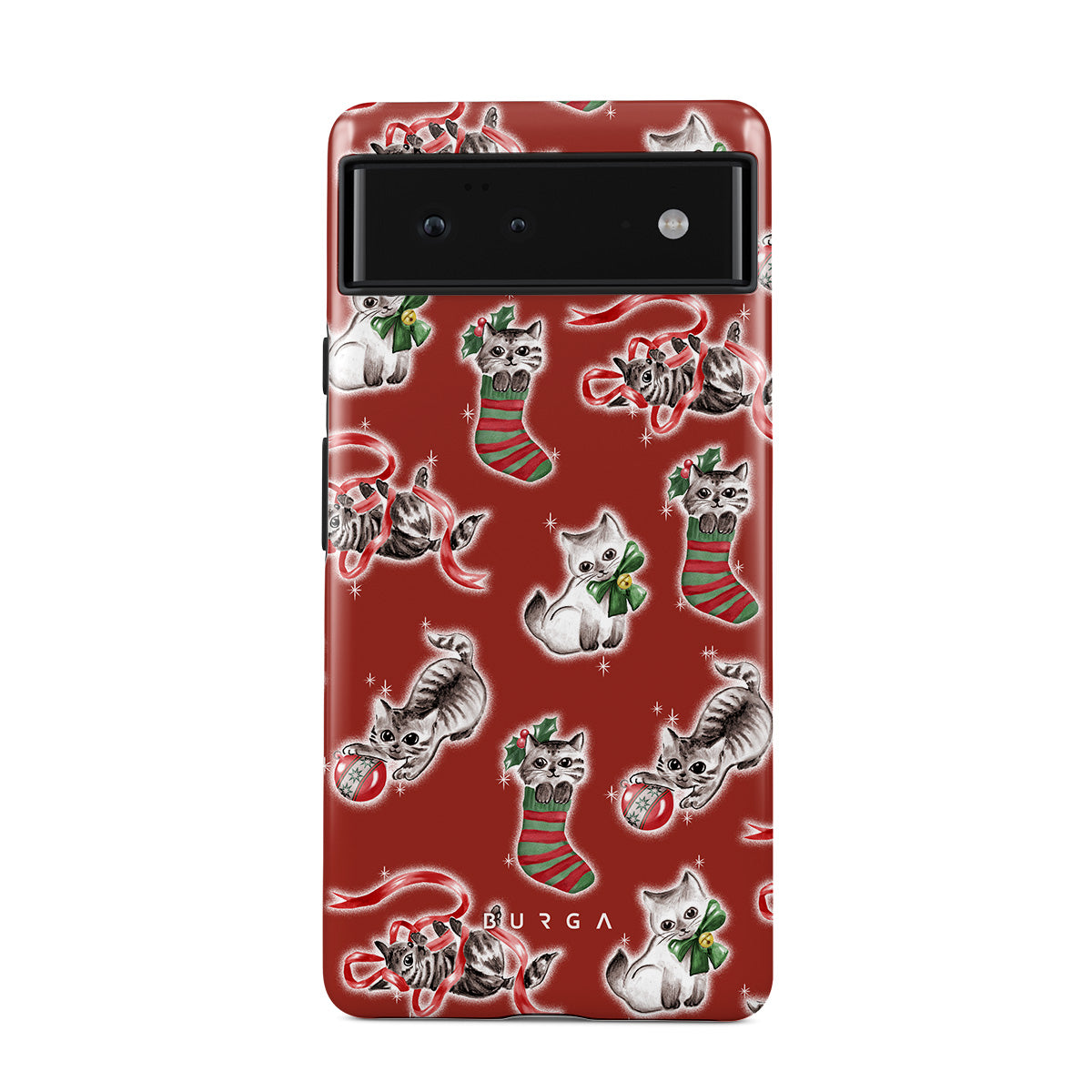 Cats destroying your Christmas decorations since forever. This Google Pixel 6a phone case design honors the tradition.