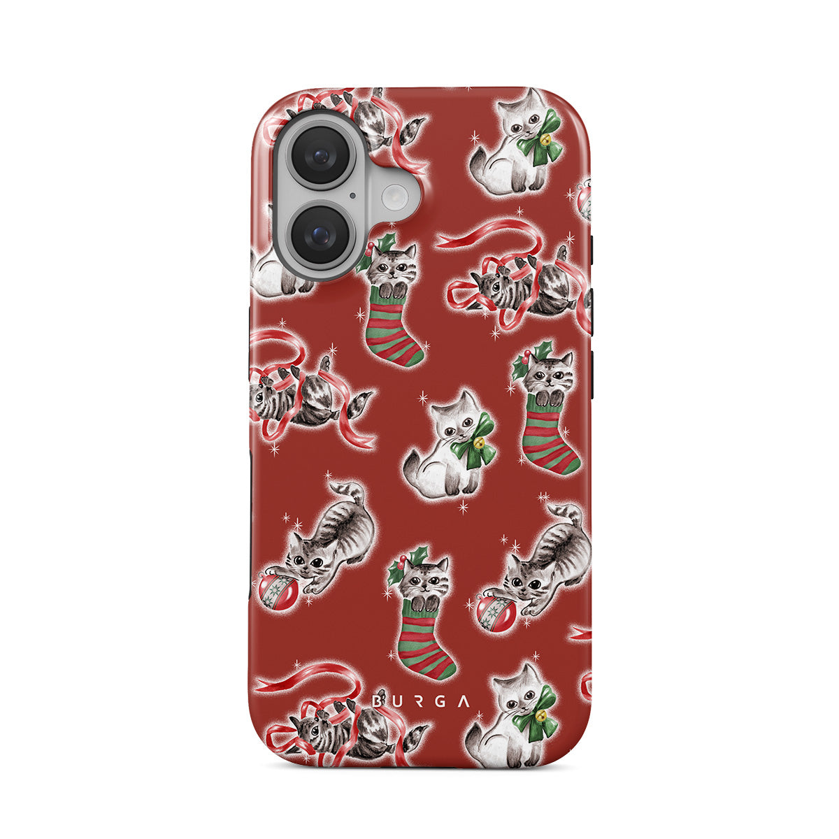 Cats destroying your Christmas decorations since forever. This iPhone 16 Plus phone case design honors the tradition.