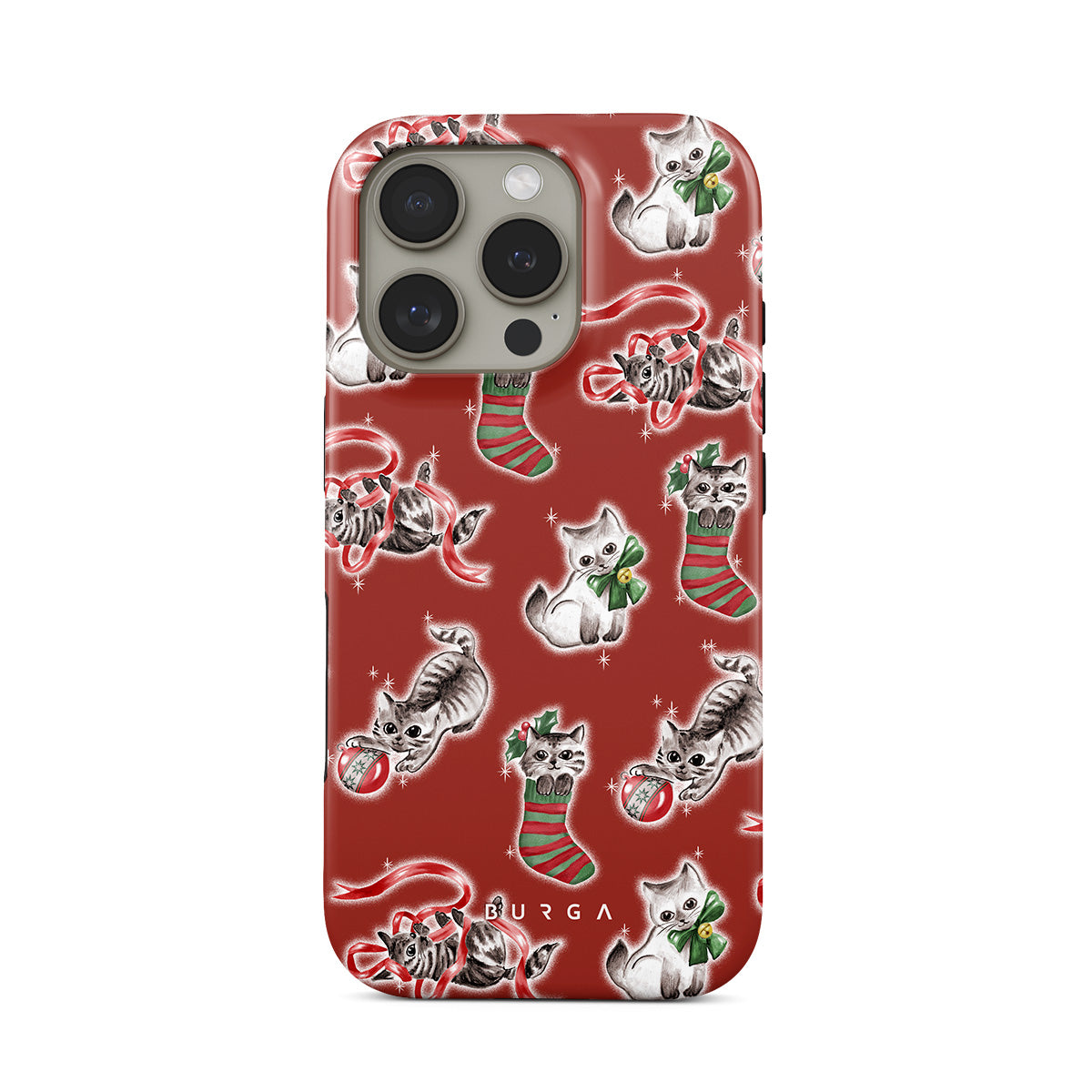 Cats destroying your Christmas decorations since forever. This iPhone 16 Pro Max phone case design honors the tradition.