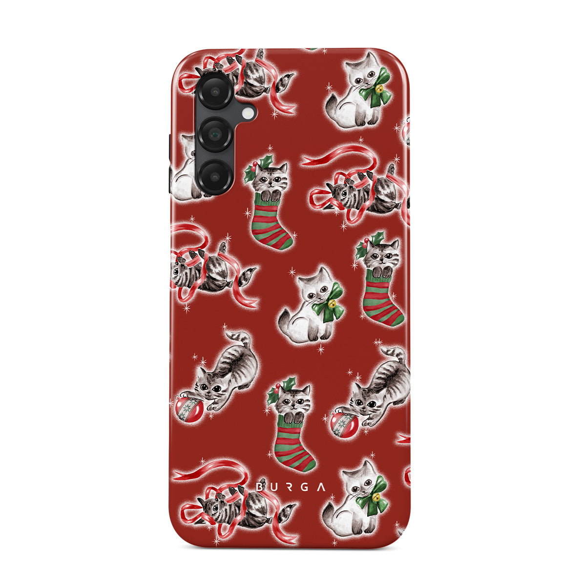 Cats destroying your Christmas decorations since forever. This Samsung Galaxy A25 phone case design honors the tradition.