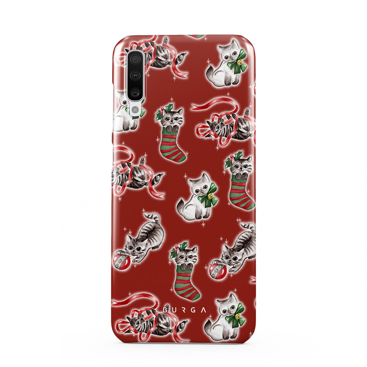 Cats destroying your Christmas decorations since forever. This Samsung Galaxy A70 phone case design honors the tradition.