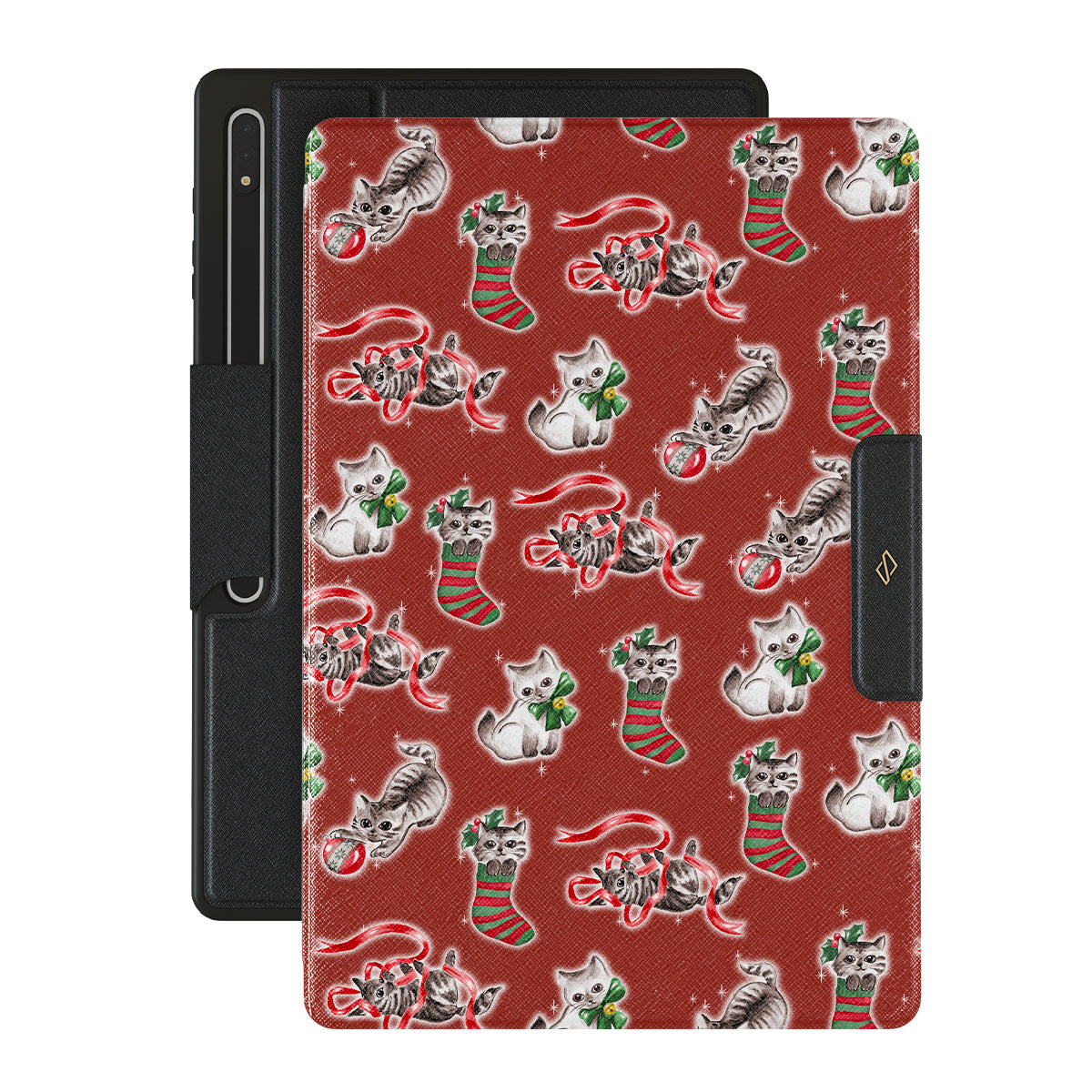 Cats destroying your Christmas decorations since forever. This Samsung Galaxy Tab S8 Ultra folio case design honors the tradition.