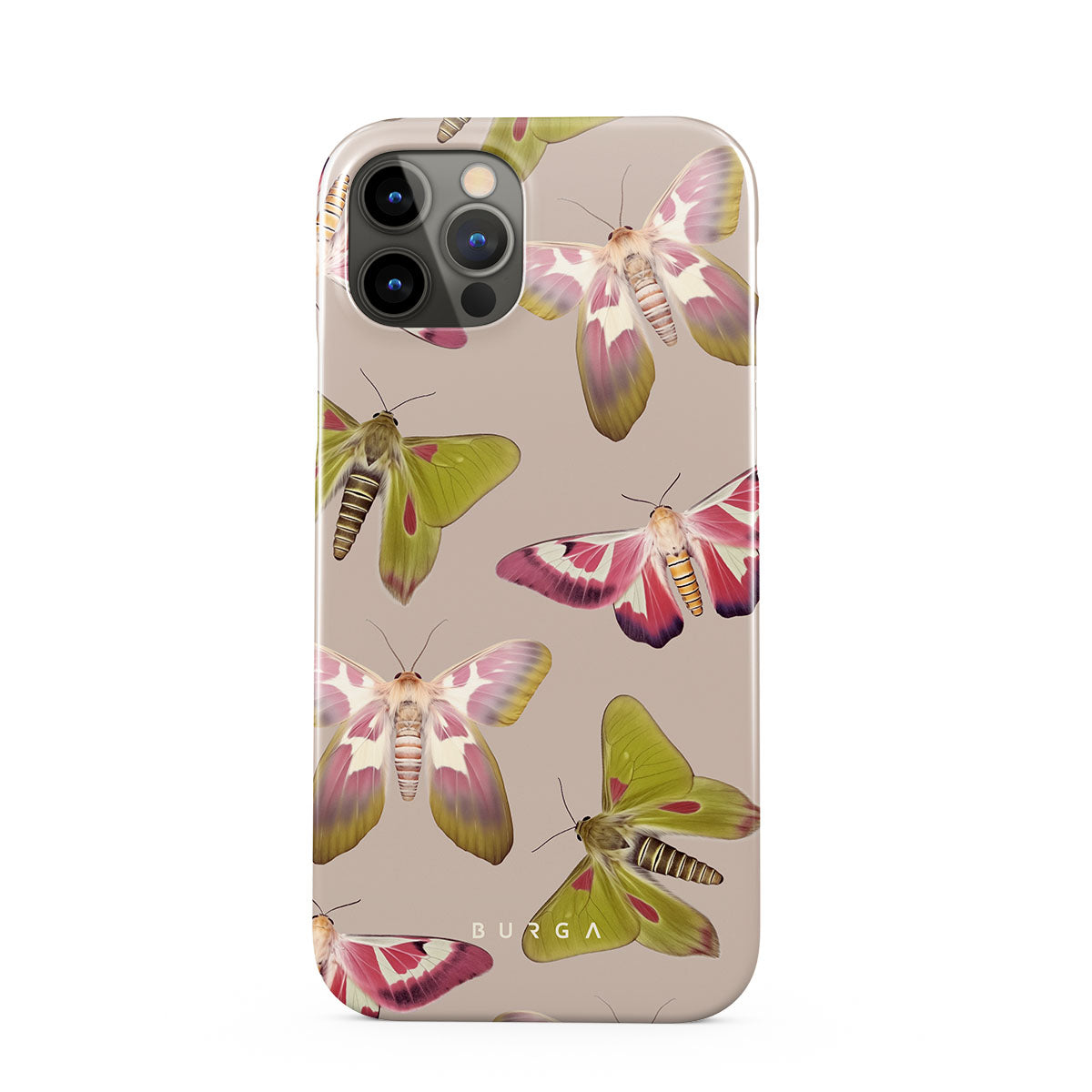 A tapestry of muted-toned moths — their wing patterns echoing tales of transformation and resilience found in nature's delicate beings. These moths, wings wide, serve as silent mentors, teaching us that every phase of life and change holds its own magic and mystery. Discover our Metamorphosis iPhone 12 Pro Max phone casedesign.