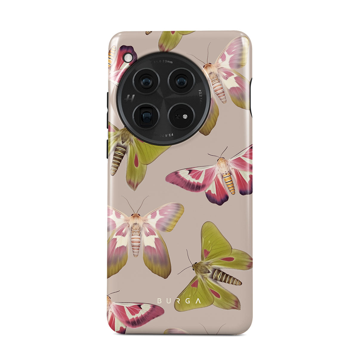 A tapestry of muted-toned moths — their wing patterns echoing tales of transformation and resilience found in nature's delicate beings. These moths, wings wide, serve as silent mentors, teaching us that every phase of life and change holds its own magic and mystery. Discover our Metamorphosis OnePlus 12 phone casedesign.