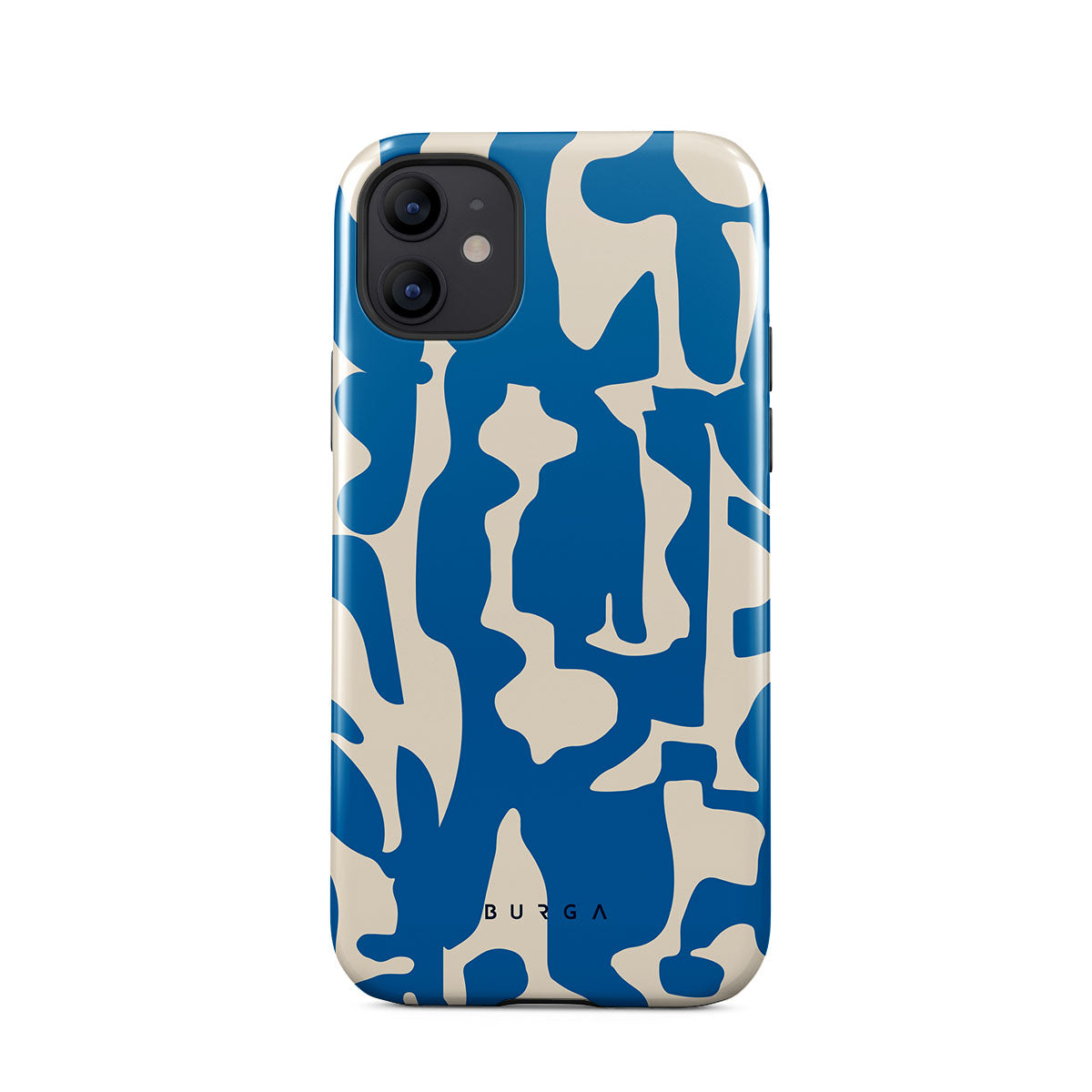 Indulge in the exquisite elegance of Mirage. Against a canvas of deep, enigmatic blue, luminous shapes gracefully disrupt the darkness, creating a captivating visual spectacle. Let this iPhone 12 phone case be a symbol of your impeccable taste and magnetic charm.