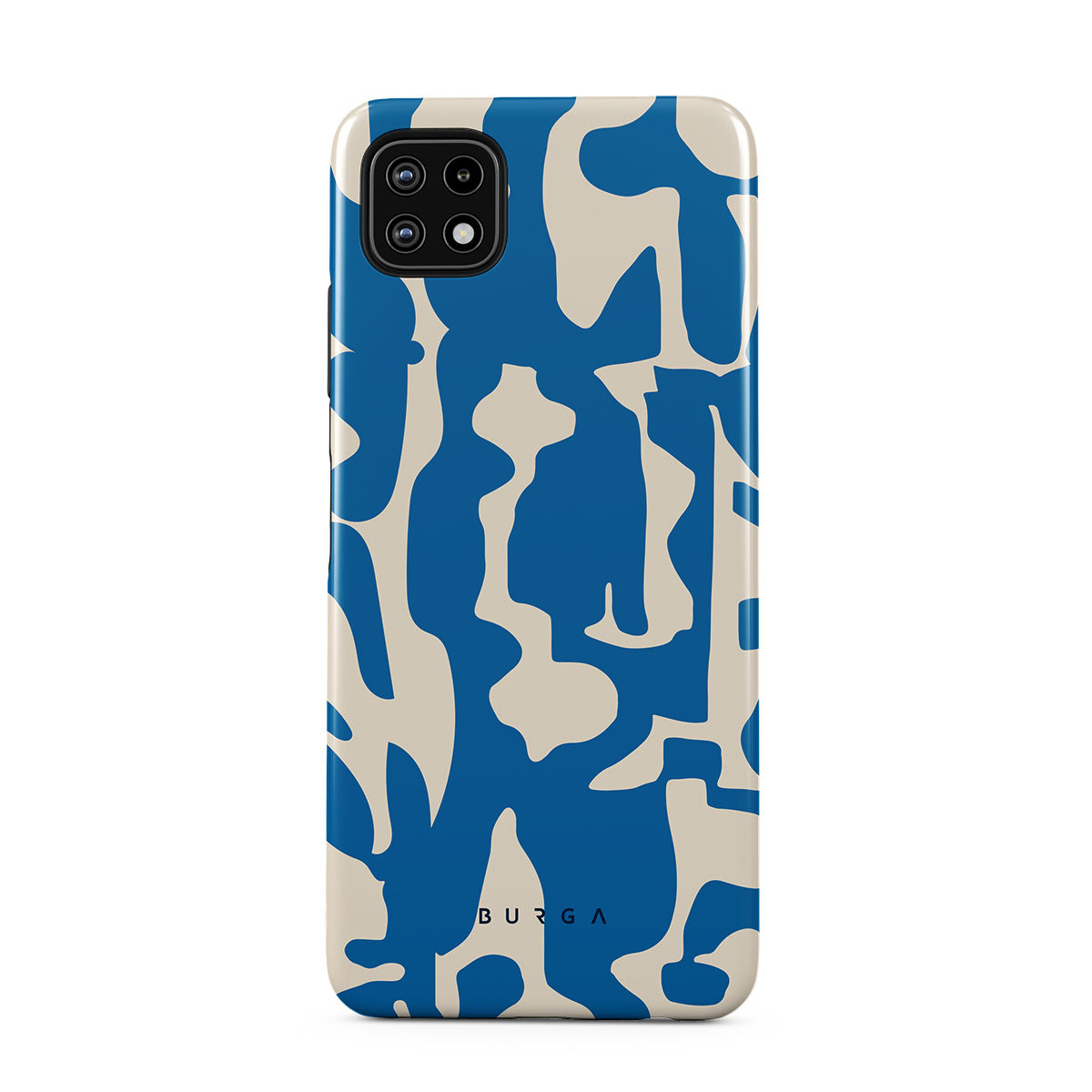 Indulge in the exquisite elegance of Mirage. Against a canvas of deep, enigmatic blue, luminous shapes gracefully disrupt the darkness, creating a captivating visual spectacle. Let this Samsung Galaxy A22 5G phone case be a symbol of your impeccable taste and magnetic charm.