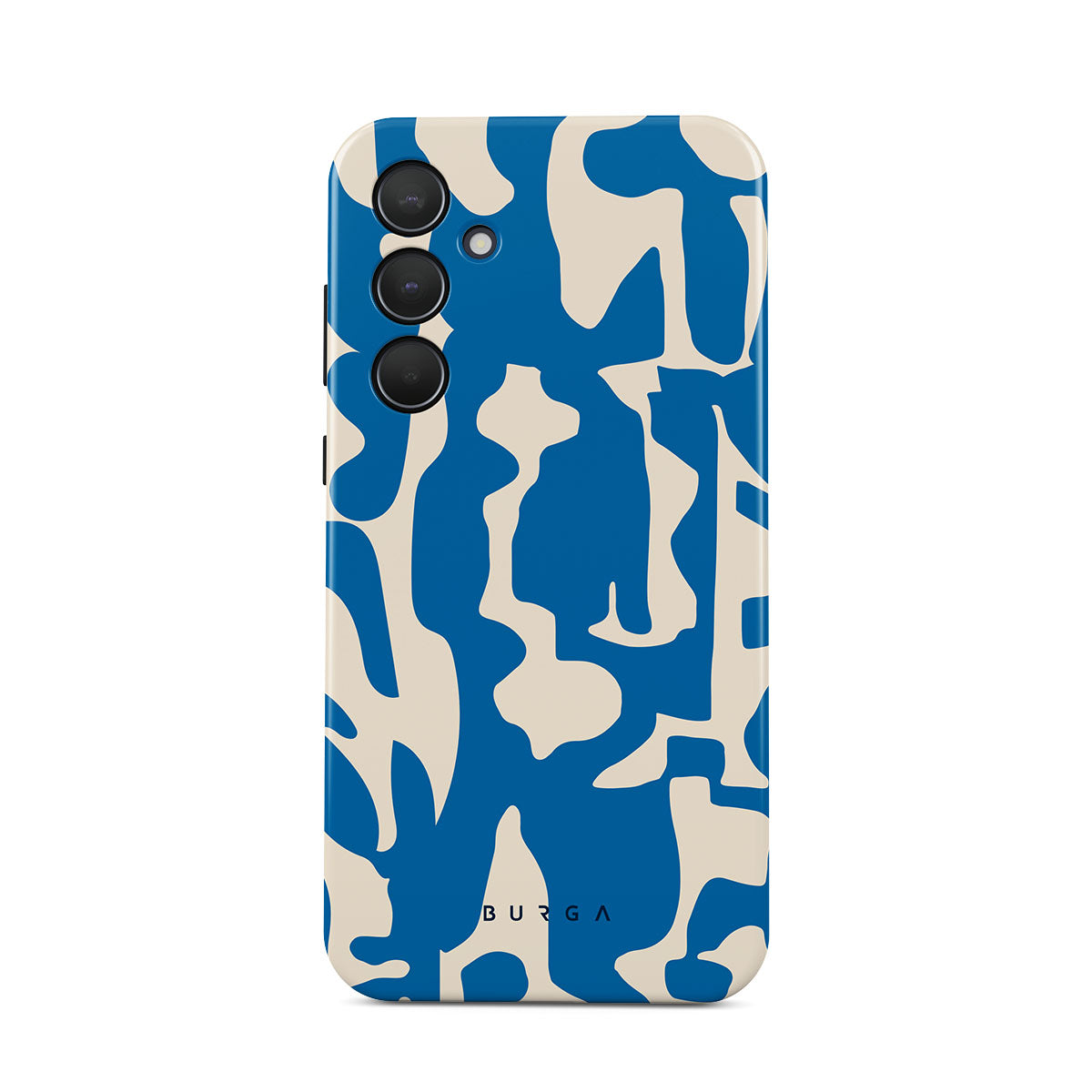 Indulge in the exquisite elegance of Mirage. Against a canvas of deep, enigmatic blue, luminous shapes gracefully disrupt the darkness, creating a captivating visual spectacle. Let this Samsung Galaxy A35 phone case be a symbol of your impeccable taste and magnetic charm.