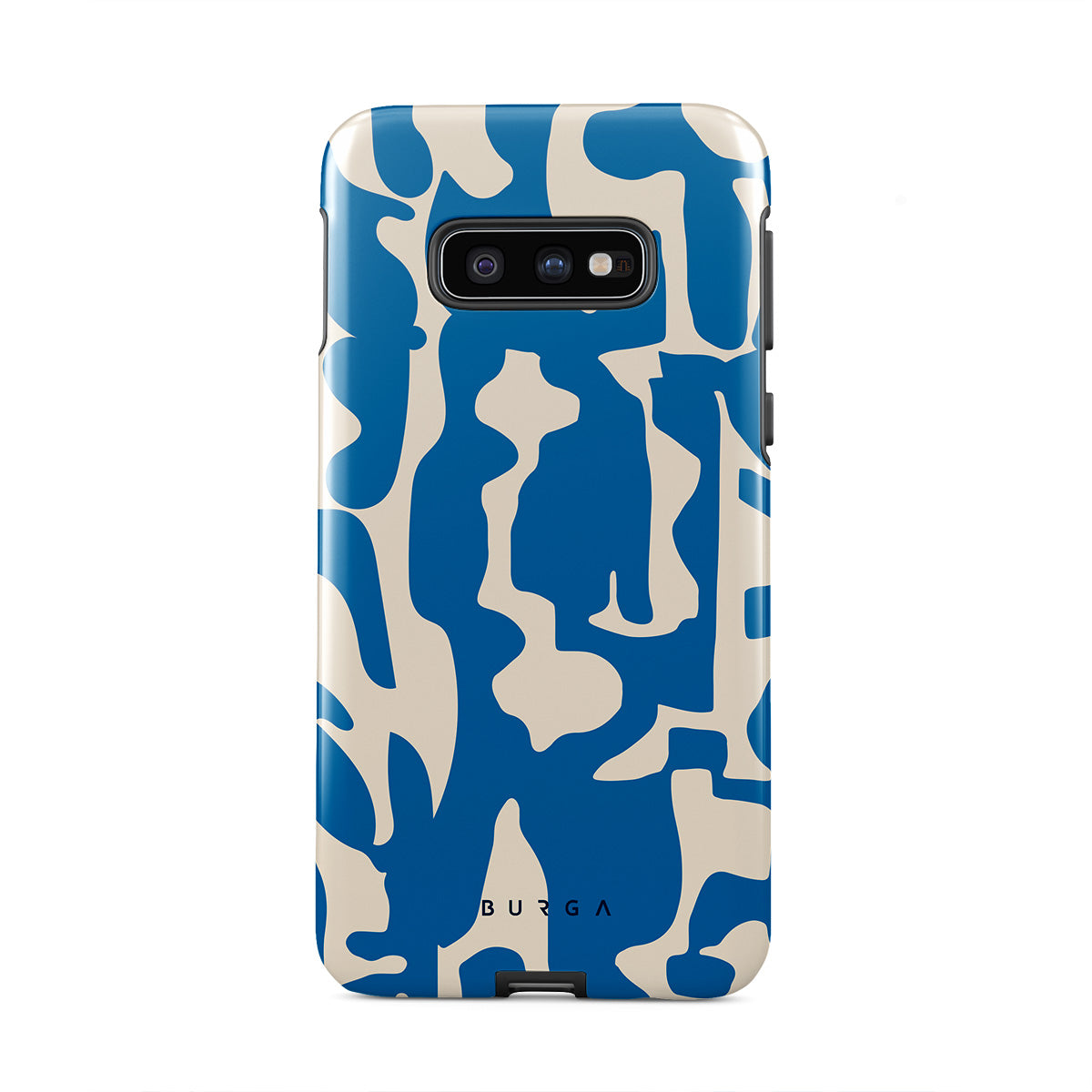 Indulge in the exquisite elegance of Mirage. Against a canvas of deep, enigmatic blue, luminous shapes gracefully disrupt the darkness, creating a captivating visual spectacle. Let this Samsung Galaxy S10E phone case be a symbol of your impeccable taste and magnetic charm.