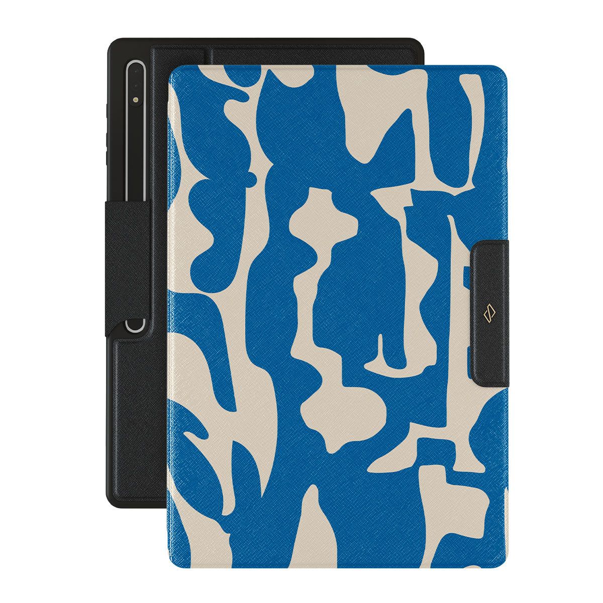 Indulge in the exquisite elegance of Mirage. Against a canvas of deep, enigmatic blue, luminous shapes gracefully disrupt the darkness, creating a captivating visual spectacle. Let this Samsung Galaxy Tab S8 Ultra folio case be a symbol of your impeccable taste and magnetic charm.