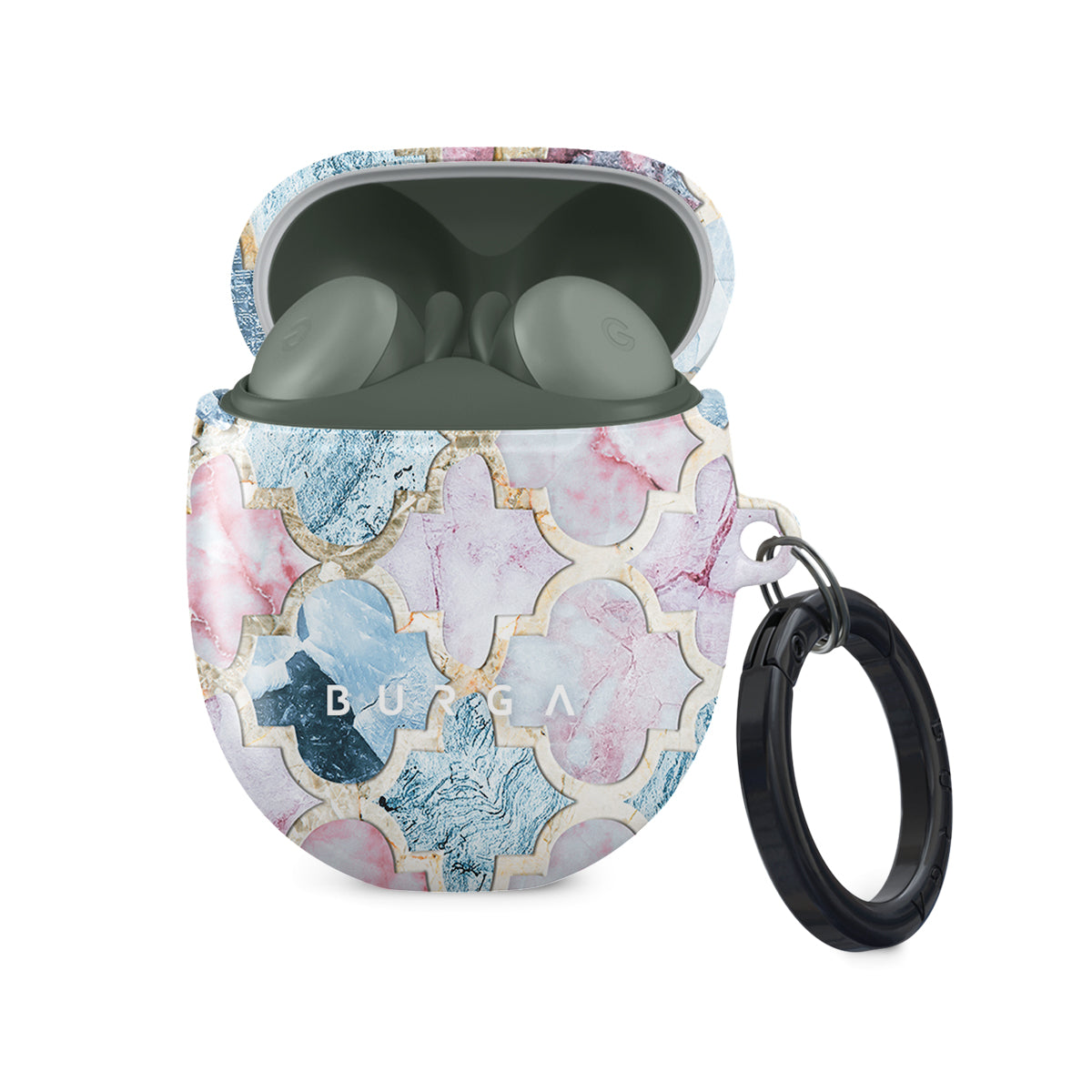 Feel closer to Morocco with our Google Pixel Buds A case cover with the Moroccan tiles' mosaic pattern. The time of choosing a dull protective cover instead of a pretty one has already passed. Protect your Google Pixel Buds A in style. Our case fits perfectly snug around Google Pixel Buds A . “Like a glove!” one might say. And it won’t disrupt the wireless charging capabilities of the newer model. There’s even an LED light indicator to prove it (don’t worry, wired charging still works, too). When fitted, the BURGA case will protect the delicate Google Pixel Buds A case beneath it from scratches, bumps, and drops while remaining scratch-free itself. Our signature design pattern prints are High Quality, and will never peel or fade away- thanks to our unique printing technology. And finally, a handy carabiner is there to make your life easier and more convenient: just snap it around your keys or belt loop and tackle the day head-on. Your music is right there by your side when you need it.