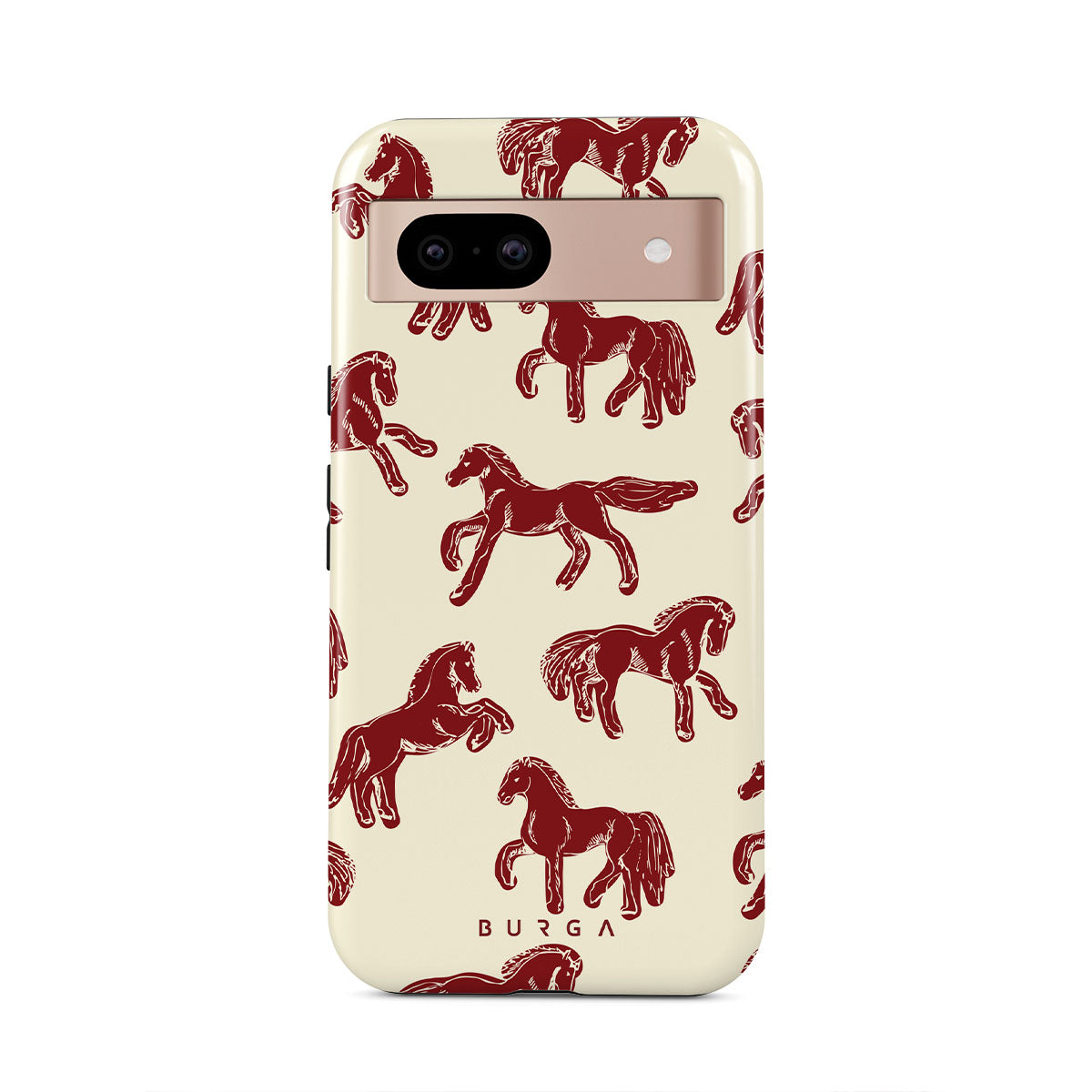 It's time to unleash your wild side with the Mustang design. Bold red horses gallop across a nude background, capturing the spirit of untamed adventure. This Google Pixel 8a phone case is perfect for the free-spirited souls ready to ride into the unknown.