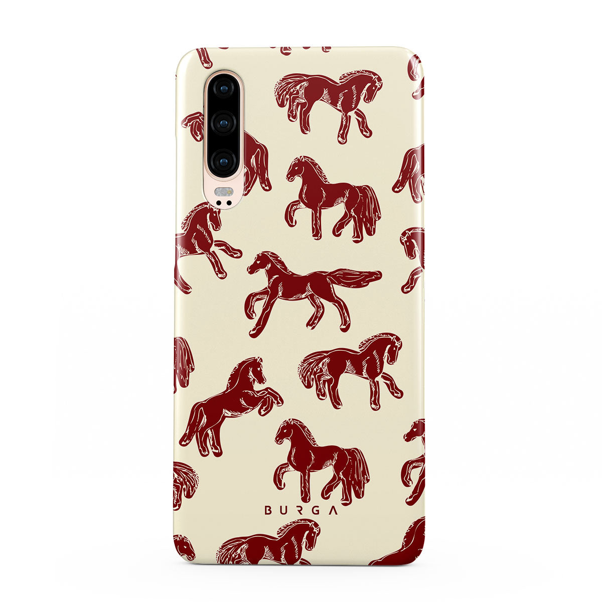 It's time to unleash your wild side with the Mustang design. Bold red horses gallop across a nude background, capturing the spirit of untamed adventure. This Huawei P30 phone case is perfect for the free-spirited souls ready to ride into the unknown.