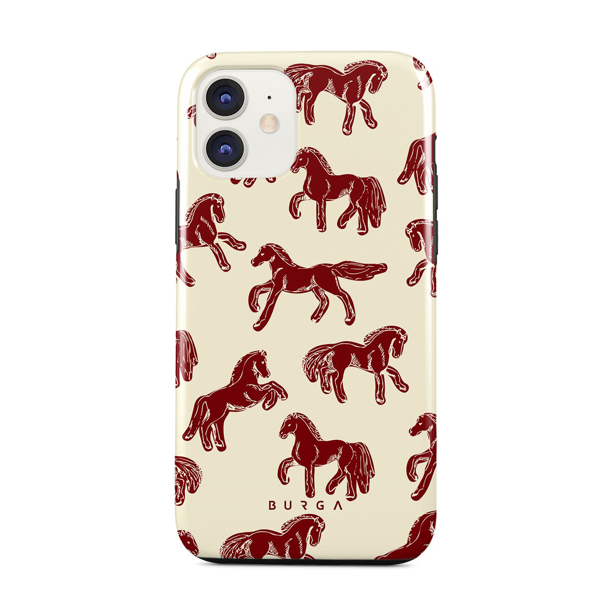 It's time to unleash your wild side with the Mustang design. Bold red horses gallop across a nude background, capturing the spirit of untamed adventure. This iPhone 11 phone case is perfect for the free-spirited souls ready to ride into the unknown.
