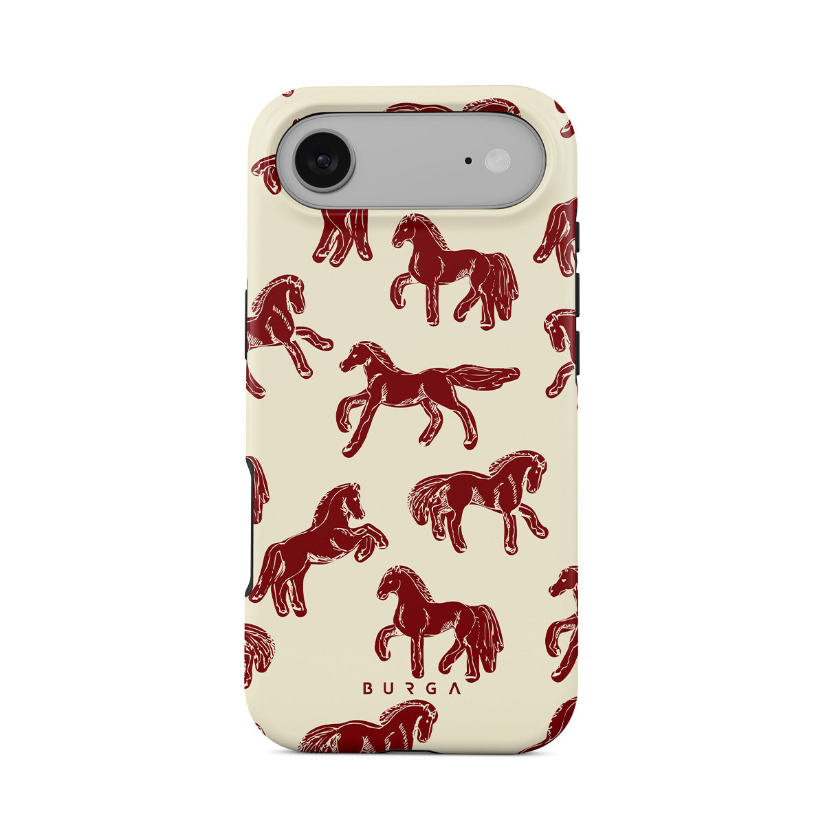 It's time to unleash your wild side with the Mustang design. Bold red horses gallop across a nude background, capturing the spirit of untamed adventure. This iPhone Air phone case is perfect for the free-spirited souls ready to ride into the unknown.