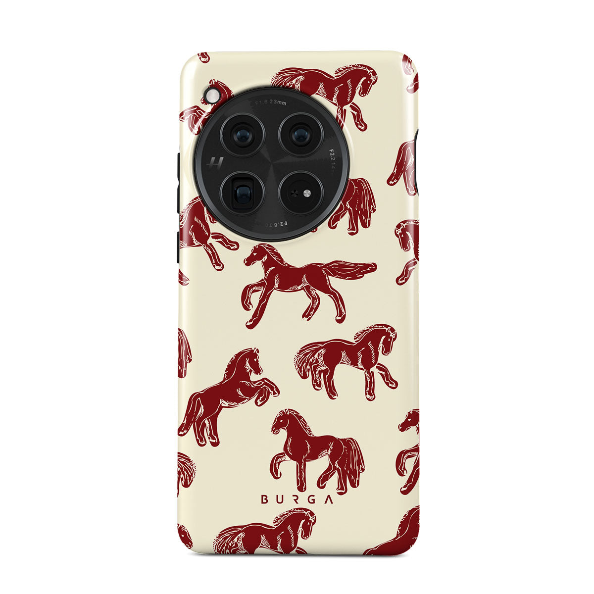It's time to unleash your wild side with the Mustang design. Bold red horses gallop across a nude background, capturing the spirit of untamed adventure. This OnePlus 12 phone case is perfect for the free-spirited souls ready to ride into the unknown.