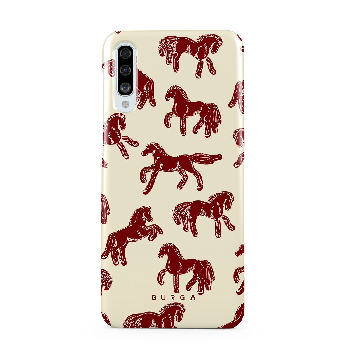 It's time to unleash your wild side with the Mustang design. Bold red horses gallop across a nude background, capturing the spirit of untamed adventure. This Samsung Galaxy A50 phone case is perfect for the free-spirited souls ready to ride into the unknown.