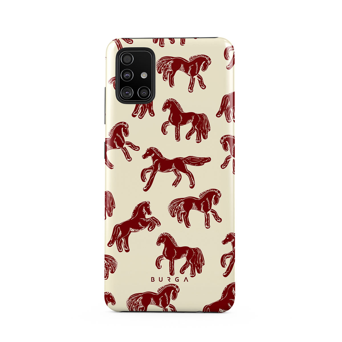 It's time to unleash your wild side with the Mustang design. Bold red horses gallop across a nude background, capturing the spirit of untamed adventure. This Samsung Galaxy A51 4G phone case is perfect for the free-spirited souls ready to ride into the unknown.