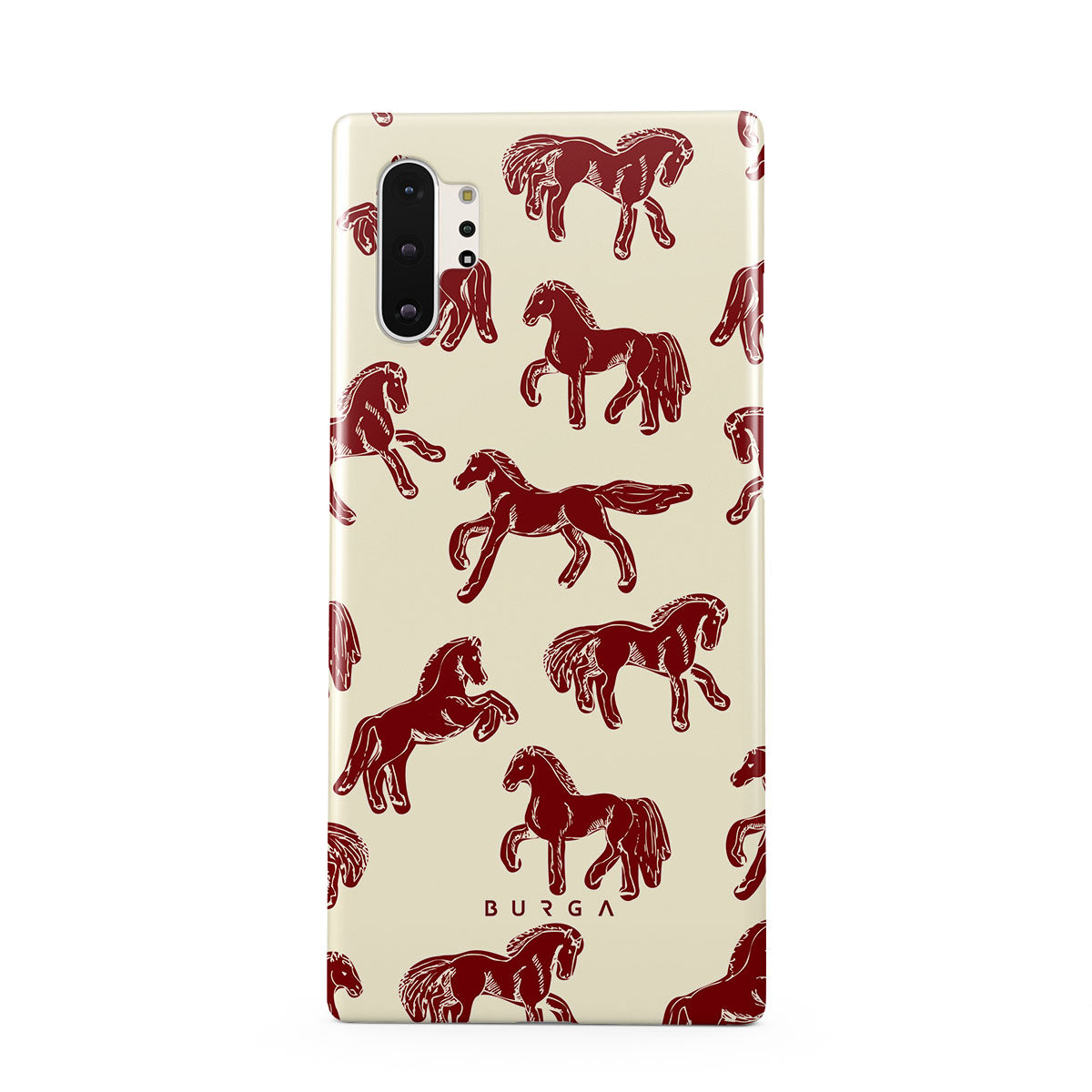 It's time to unleash your wild side with the Mustang design. Bold red horses gallop across a nude background, capturing the spirit of untamed adventure. This Samsung Galaxy Note 10 Plus phone case is perfect for the free-spirited souls ready to ride into the unknown.