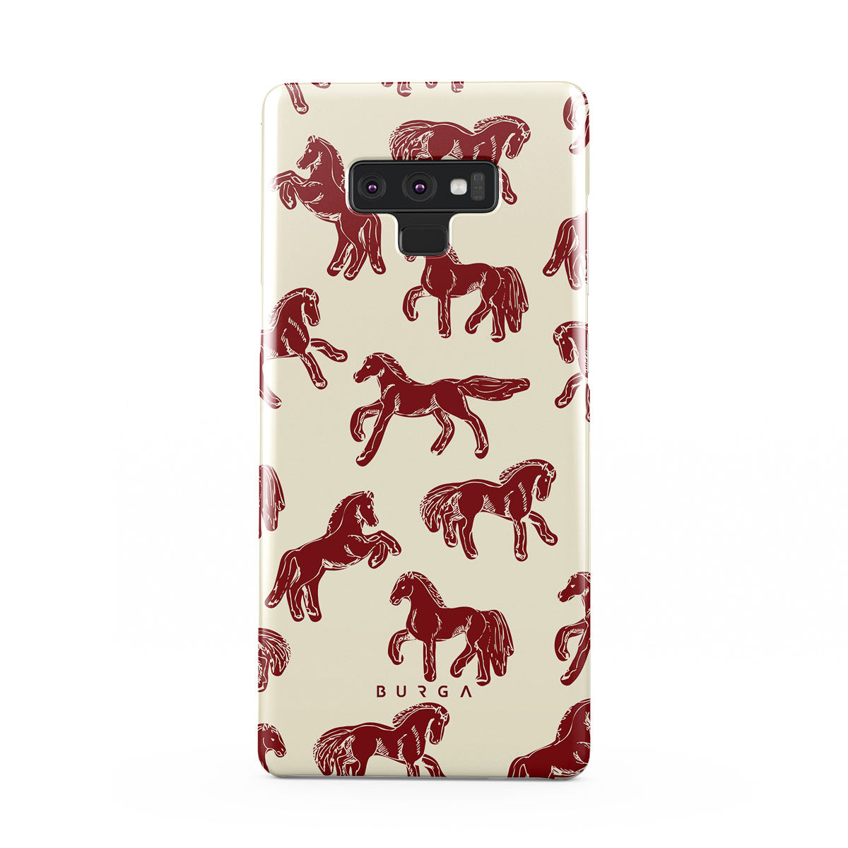 It's time to unleash your wild side with the Mustang design. Bold red horses gallop across a nude background, capturing the spirit of untamed adventure. This Samsung Galaxy Note 9 phone case is perfect for the free-spirited souls ready to ride into the unknown.
