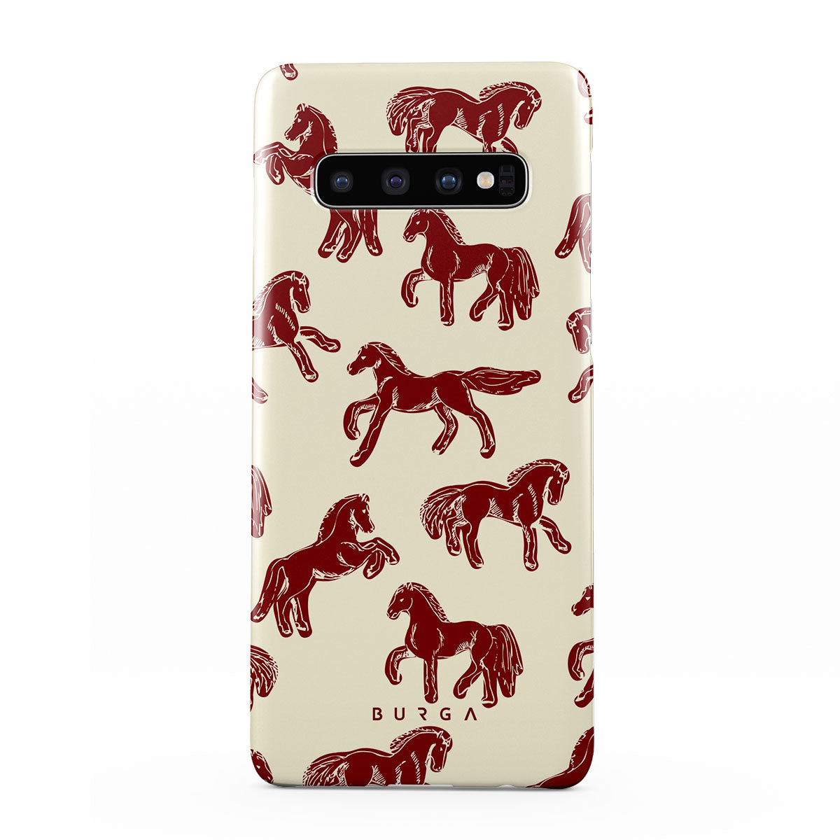 It's time to unleash your wild side with the Mustang design. Bold red horses gallop across a nude background, capturing the spirit of untamed adventure. This Samsung Galaxy S10 Plus phone case is perfect for the free-spirited souls ready to ride into the unknown.