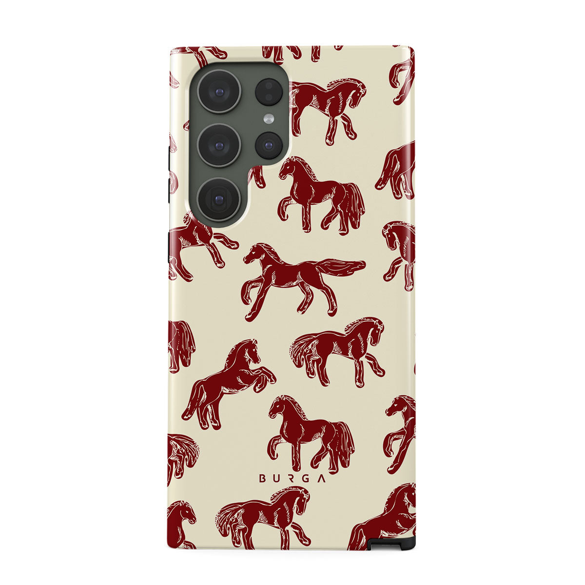 It's time to unleash your wild side with the Mustang design. Bold red horses gallop across a nude background, capturing the spirit of untamed adventure. This Samsung Galaxy S23 Ultra phone case is perfect for the free-spirited souls ready to ride into the unknown.