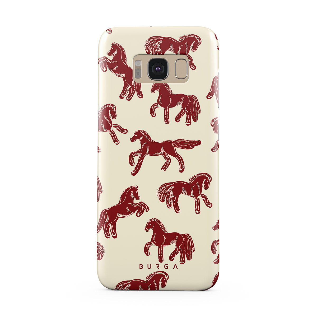 It's time to unleash your wild side with the Mustang design. Bold red horses gallop across a nude background, capturing the spirit of untamed adventure. This Samsung Galaxy S8 phone case is perfect for the free-spirited souls ready to ride into the unknown.