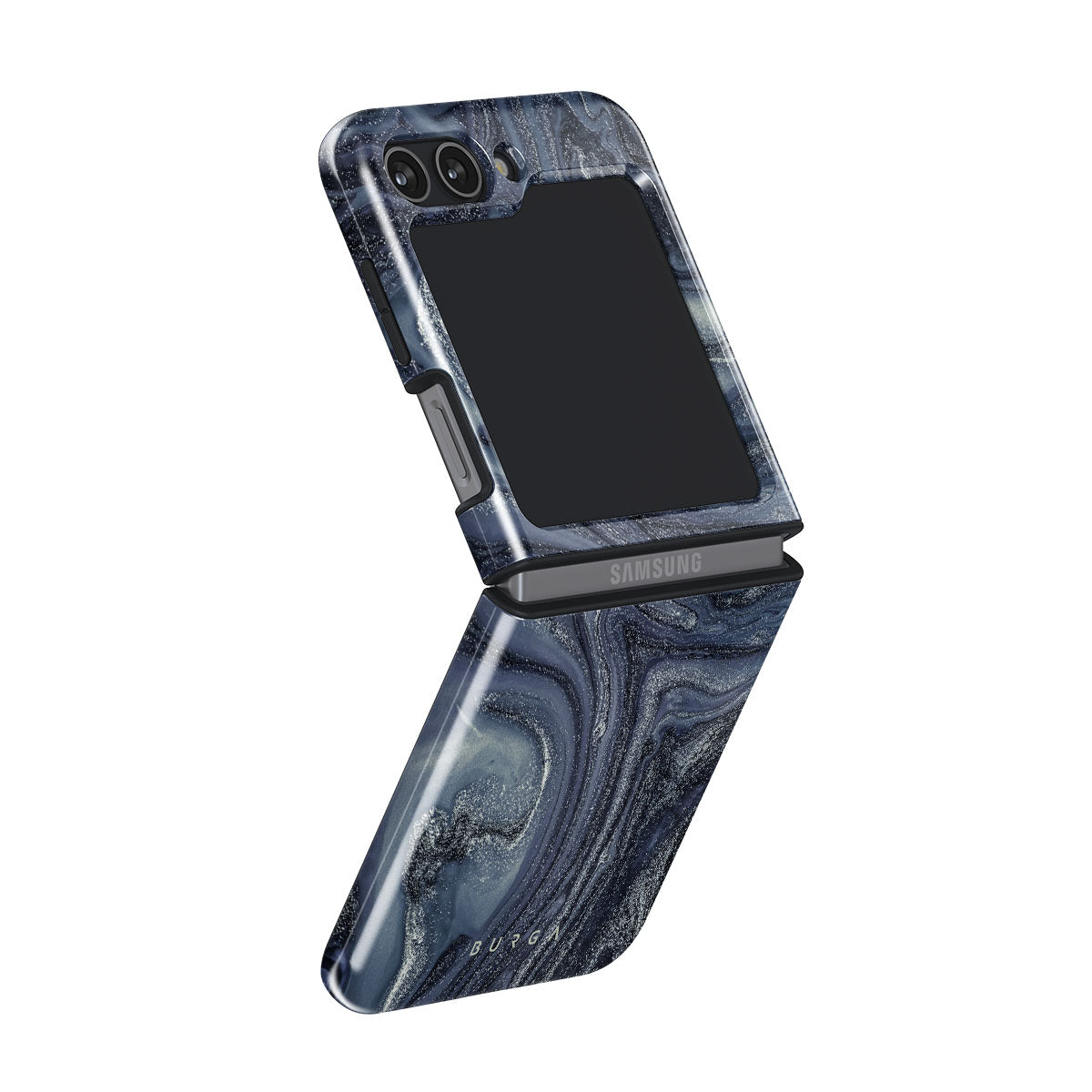 Our Navy Trench Samsung Galaxy Z Flip 5 phone case is inspired by the ever-fascinating marble trend. Not only does the navy blue marble design look sophisticated and is guaranteed to catch everyone's eye, but it also adds a touch of luxury to your phone while providing shock-proof protection.