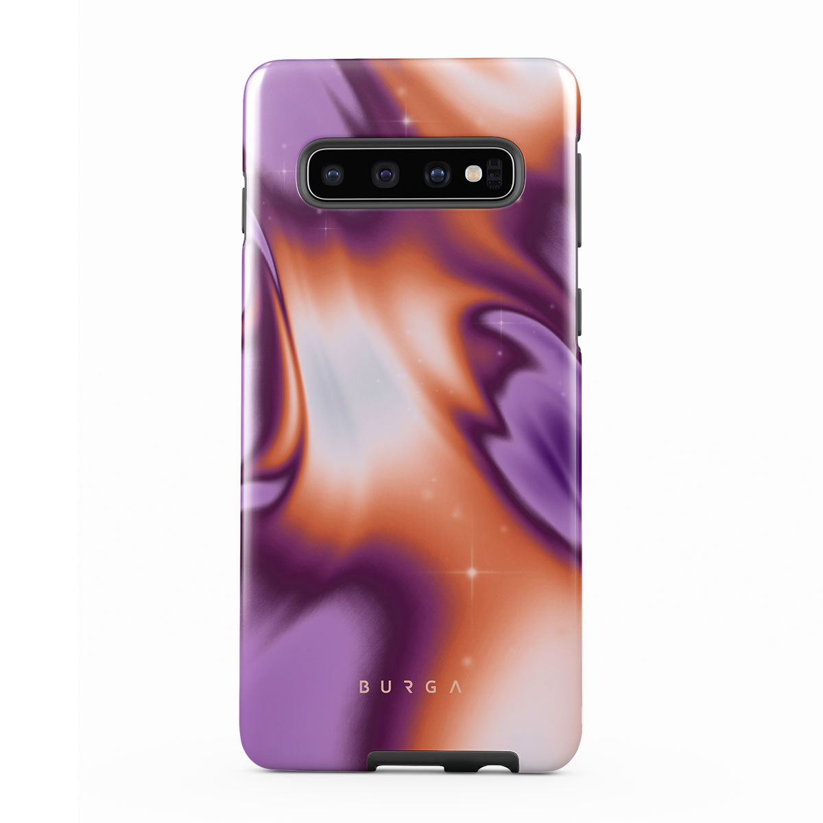 Dip into the Nebula, where runway glamour collides with cosmic seduction. Purple flames play upon a bright canvas, showcasing the fiery dance of distant galaxies. Our Nebula Samsung Galaxy S10 4G phone case is a piece of the universe, sparking conversations with its vibrant, otherworldly beauty.