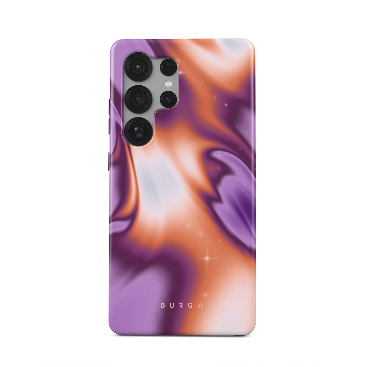 Dip into the Nebula, where runway glamour collides with cosmic seduction. Purple flames play upon a bright canvas, showcasing the fiery dance of distant galaxies. Our Nebula Samsung Galaxy S25 Ultra phone case is a piece of the universe, sparking conversations with its vibrant, otherworldly beauty.