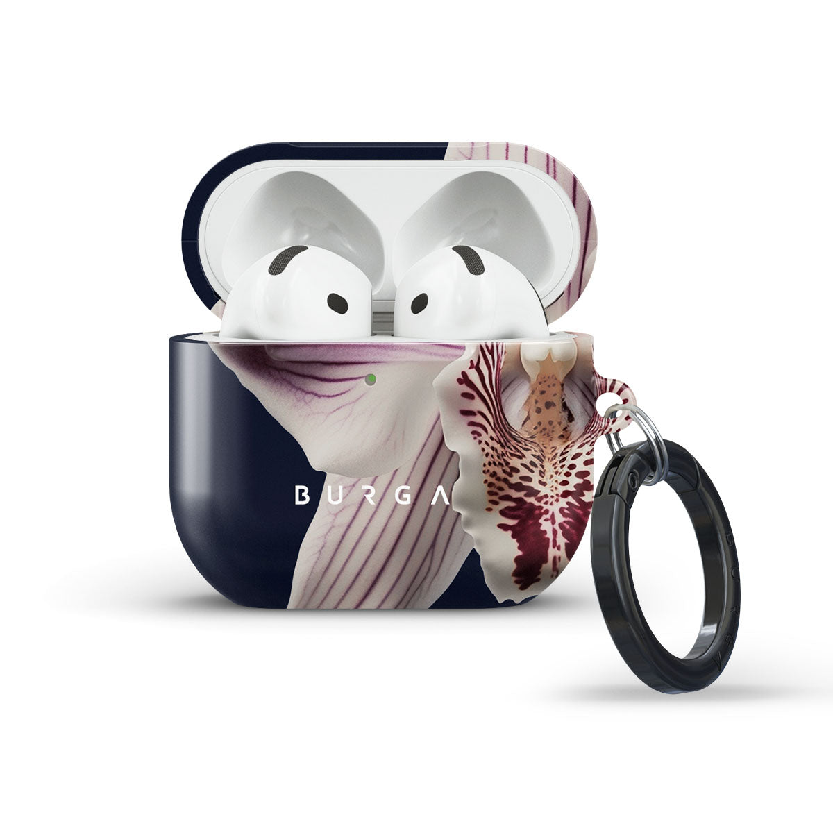 The white orchid blooms boldly upon a night sky blue, a beacon of clarity in the darkness. Our Nectar Apple AirPods 4 case cover design speaks to the soul's desire to find light within, to illuminate the hidden paths of self-discovery that only reveal themselves under the cloak of introspection.