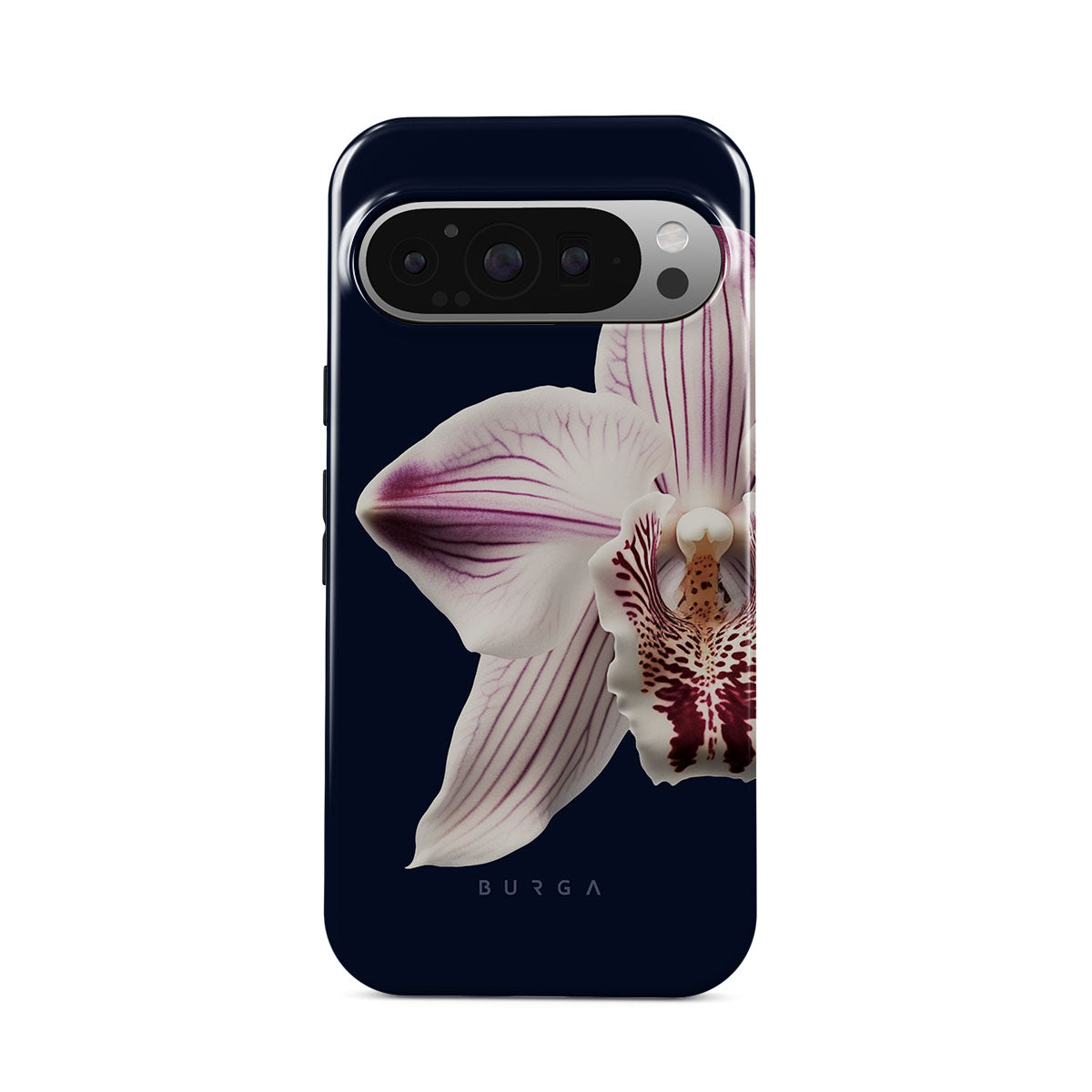 The white orchid blooms boldly upon a night sky blue, a beacon of clarity in the darkness. Our Nectar Google Pixel 9 Pro XL phone case design speaks to the soul's desire to find light within, to illuminate the hidden paths of self-discovery that only reveal themselves under the cloak of introspection.