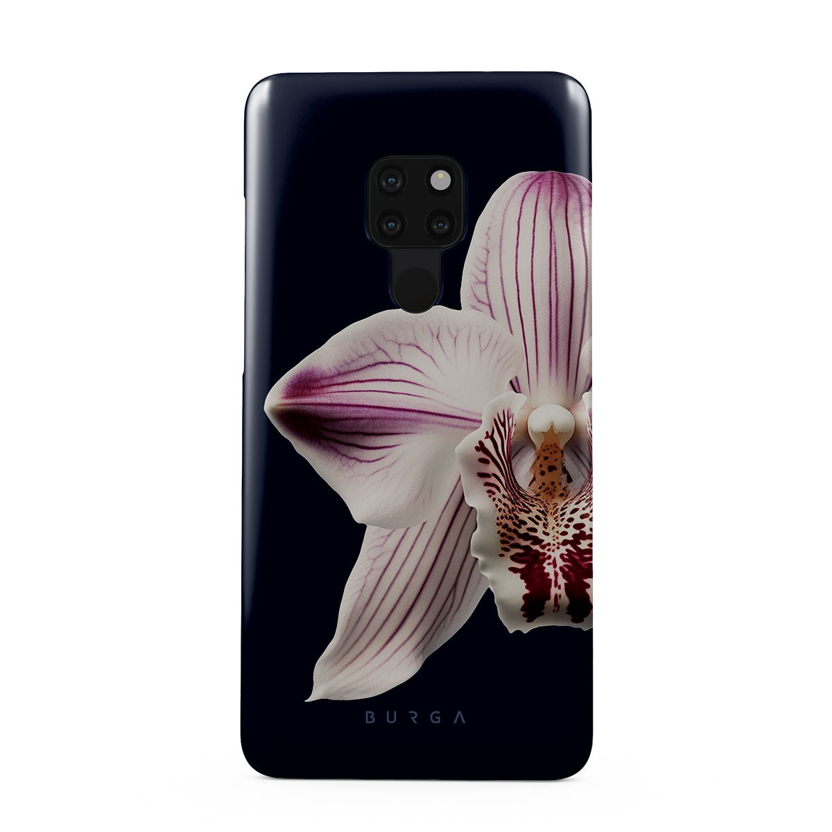 The white orchid blooms boldly upon a night sky blue, a beacon of clarity in the darkness. Our Nectar Huawei Mate 20 phone case design speaks to the soul's desire to find light within, to illuminate the hidden paths of self-discovery that only reveal themselves under the cloak of introspection.