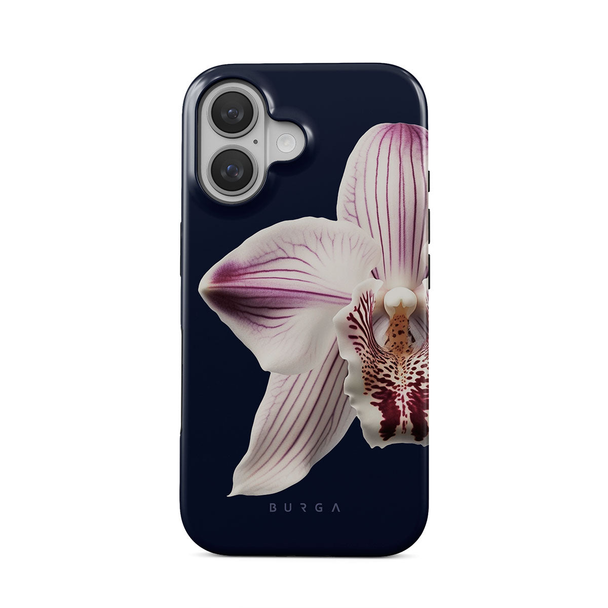 The white orchid blooms boldly upon a night sky blue, a beacon of clarity in the darkness. Our Nectar iPhone 16 Plus phone case design speaks to the soul's desire to find light within, to illuminate the hidden paths of self-discovery that only reveal themselves under the cloak of introspection.