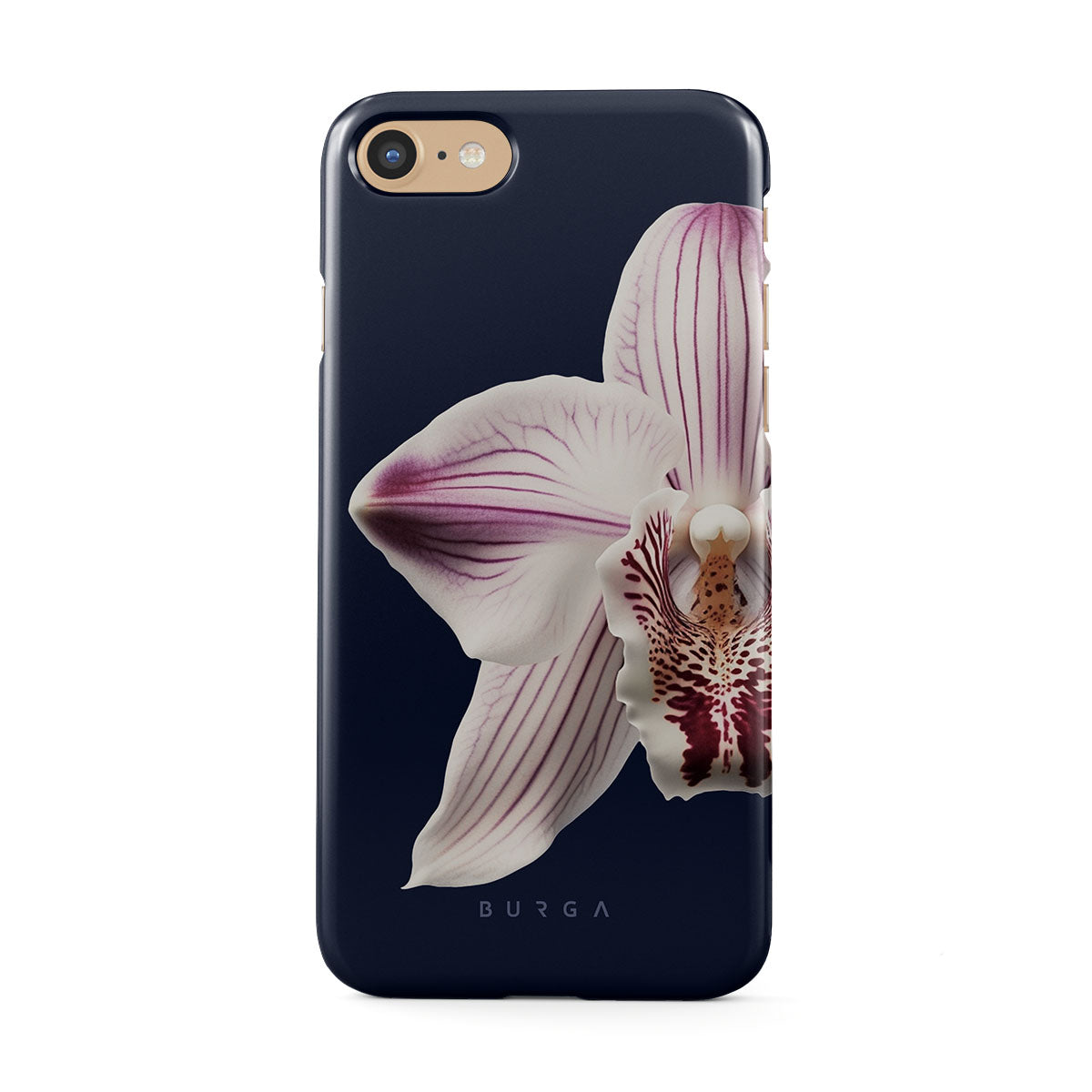 The white orchid blooms boldly upon a night sky blue, a beacon of clarity in the darkness. Our Nectar iPhone SE (2020) phone case design speaks to the soul's desire to find light within, to illuminate the hidden paths of self-discovery that only reveal themselves under the cloak of introspection.
