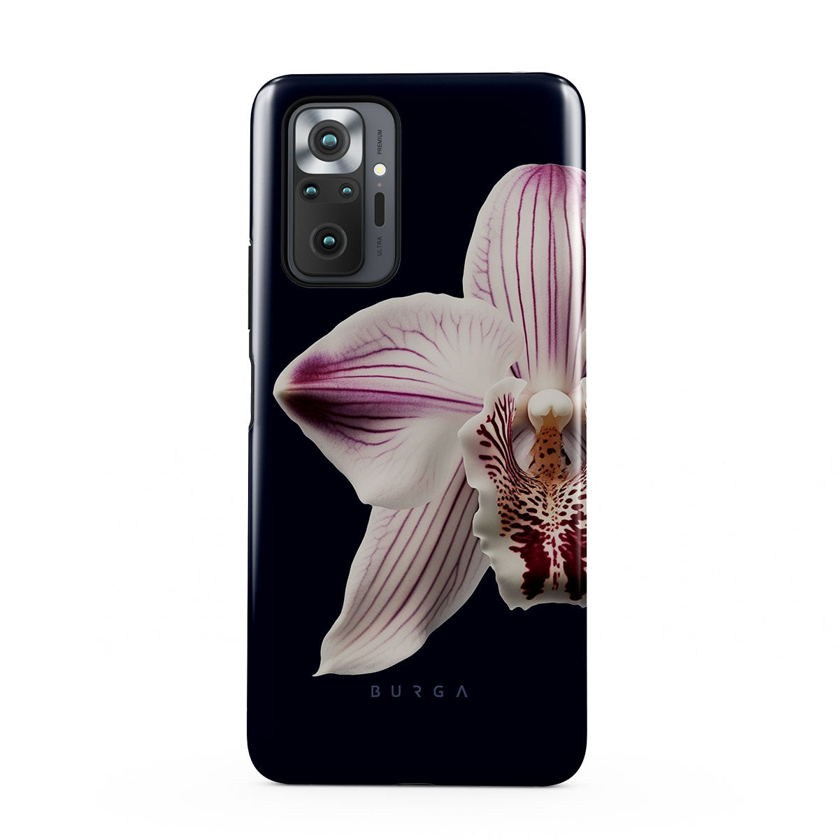 The white orchid blooms boldly upon a night sky blue, a beacon of clarity in the darkness. Our Nectar Xiaomi Redmi Note 10 Pro phone case design speaks to the soul's desire to find light within, to illuminate the hidden paths of self-discovery that only reveal themselves under the cloak of introspection.