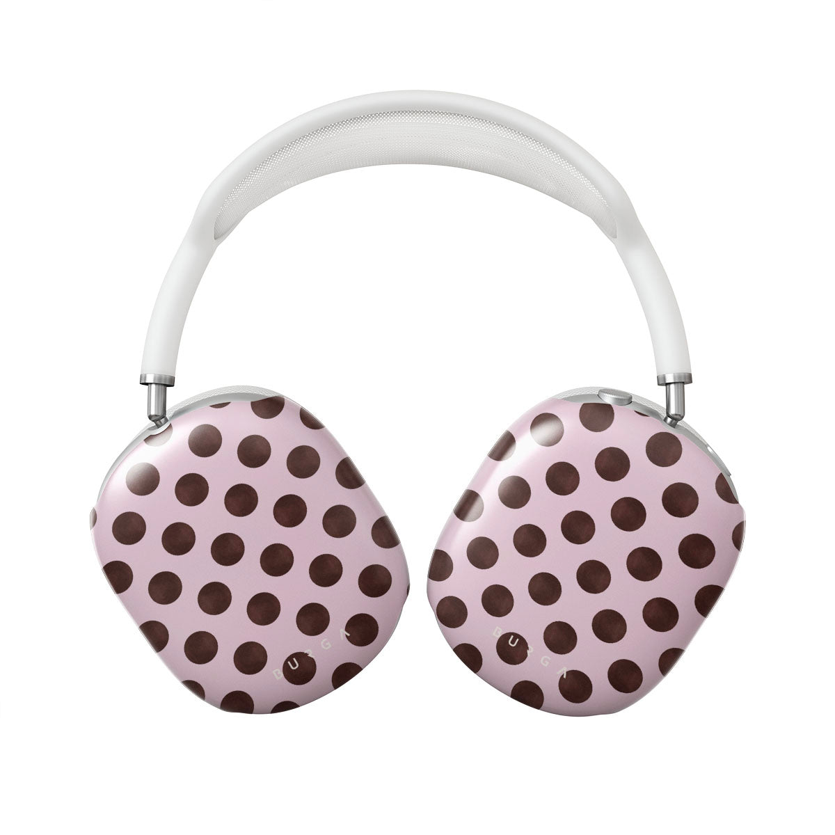 This design features: a retro polka dot pattern, pink background with brown polka dots.