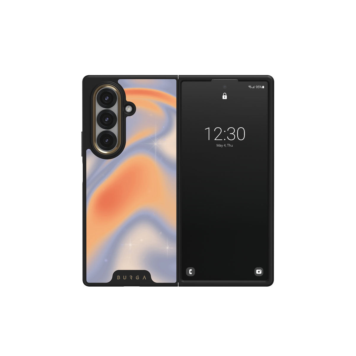 Magnetic gray rays encounter fiery orange bursts, merging nature's drama with high-fashion flair. In meteorology, a nimbus cloud heralds rain, symbolizing rebirth and fresh starts. Drawing inspiration from this, our Nimbus Samsung Galaxy Z Fold 7 phone case design ensures you are the center of attention—wherever you go.