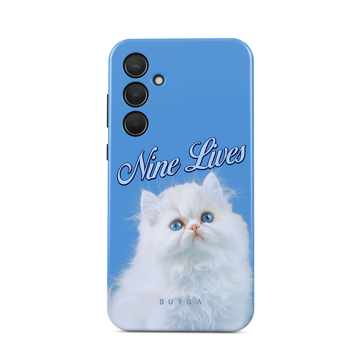 Channel your inner diva with our Nine Lives Samsung Galaxy A35 phone case. It's luxe, plush, and purr-fectly fabulous, with just enough fluff to show you mean business.