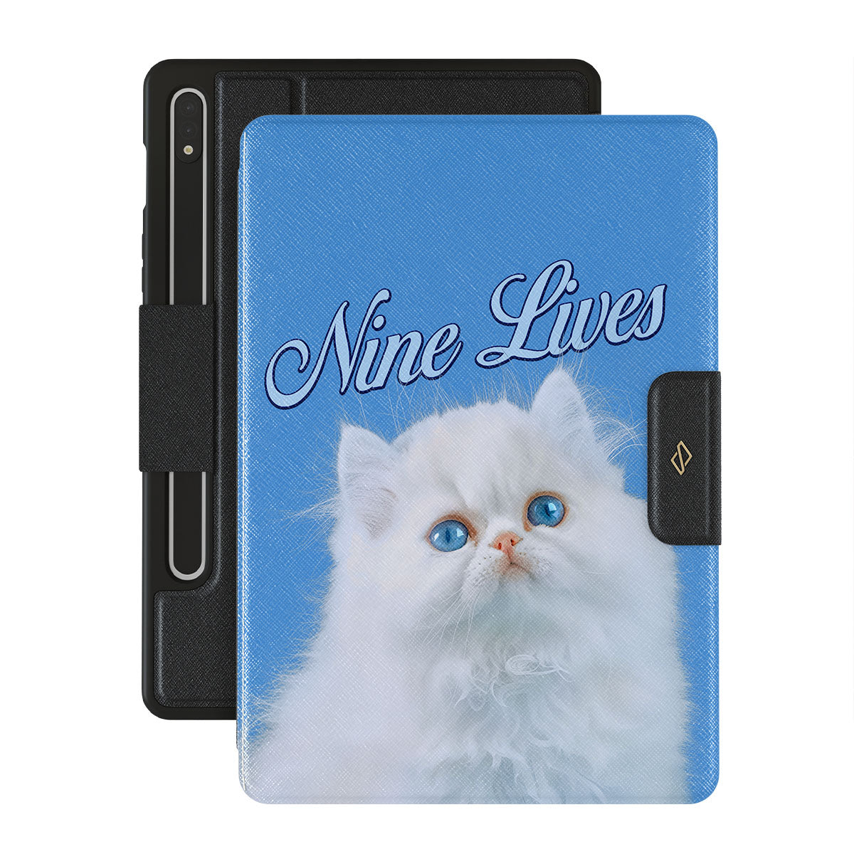Channel your inner diva with our Nine Lives Samsung Galaxy Tab S9 FE folio case. It's luxe, plush, and purr-fectly fabulous, with just enough fluff to show you mean business.