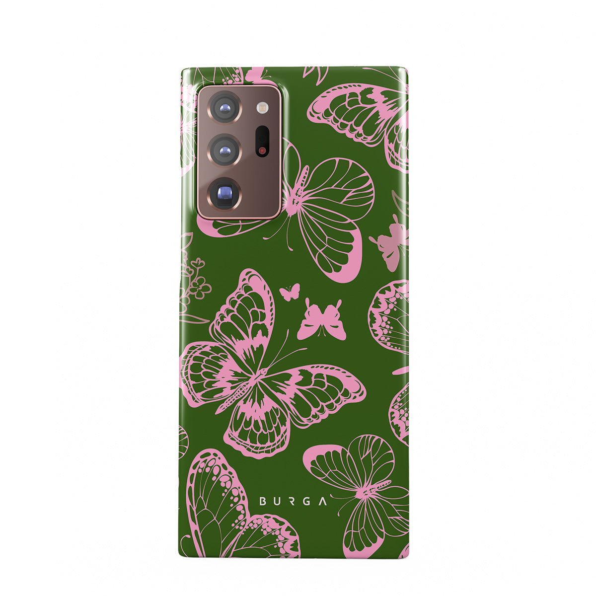 A retro-inspired masterpiece, this Samsung Galaxy Note 20 Ultra 4G / 5G phone case features a delightful butterfly print that's sure to take you on a trip down memory lane. Inspired by the carefree spirit of the groovy era, this case reminds you to live your best life with No Regrets and embrace every moment. With this enchanting case design, you'll be ready to spread your wings and fly high, with nothing holding you back.