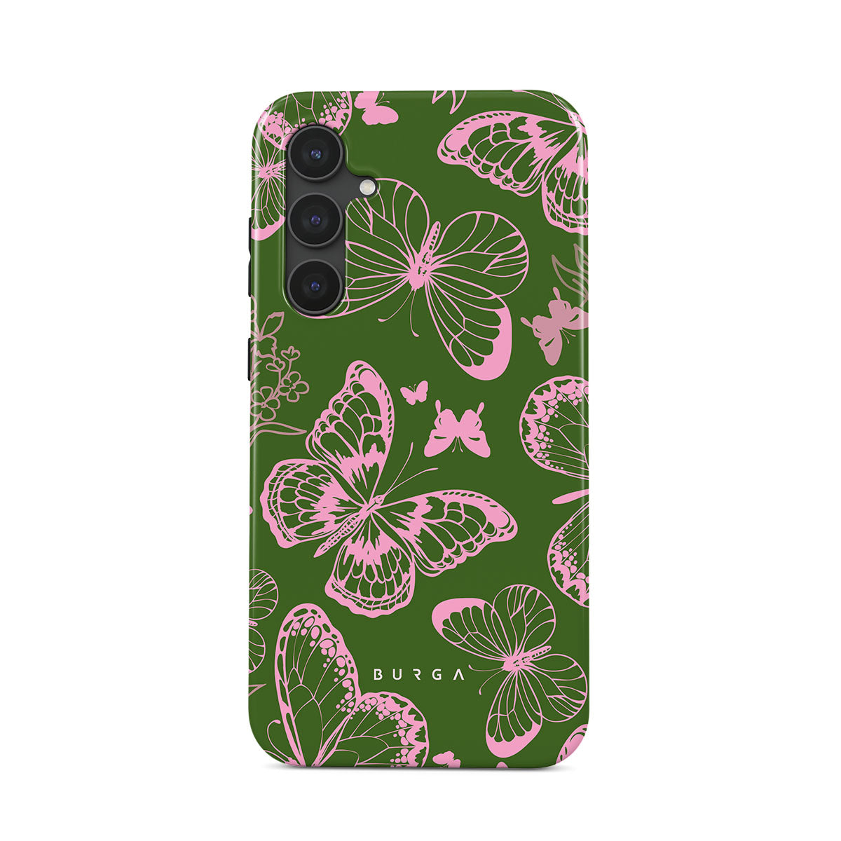 A retro-inspired masterpiece, this Samsung Galaxy S23 FE phone case features a delightful butterfly print that's sure to take you on a trip down memory lane. Inspired by the carefree spirit of the groovy era, this case reminds you to live your best life with No Regrets and embrace every moment. With this enchanting case design, you'll be ready to spread your wings and fly high, with nothing holding you back.