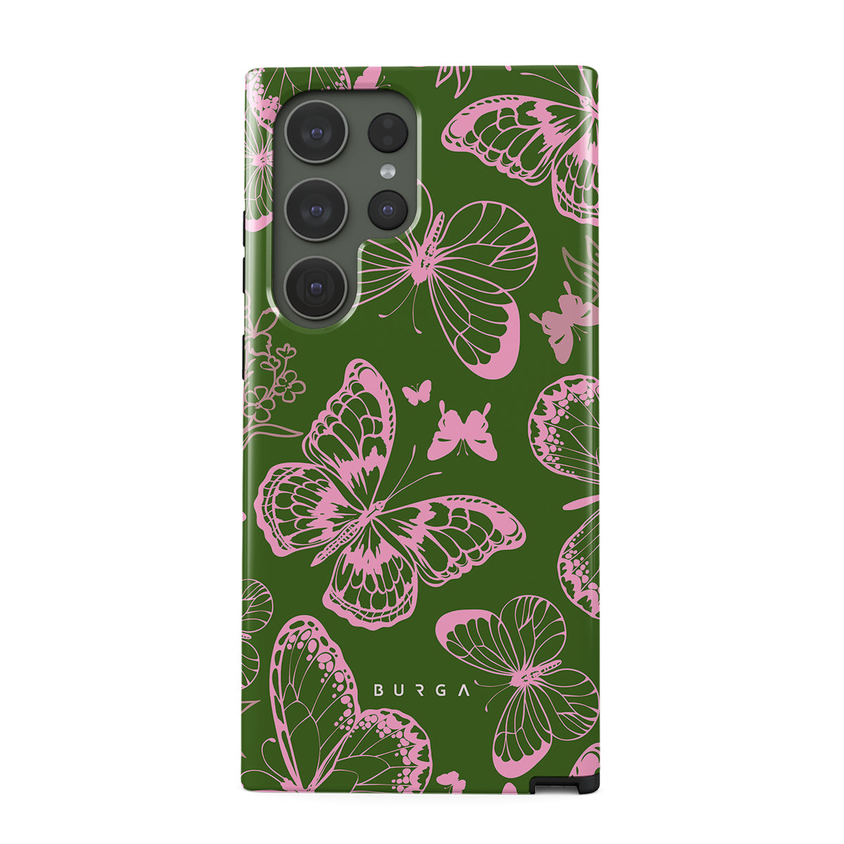 A retro-inspired masterpiece, this Samsung Galaxy S23 Ultra phone case features a delightful butterfly print that's sure to take you on a trip down memory lane. Inspired by the carefree spirit of the groovy era, this case reminds you to live your best life with No Regrets and embrace every moment. With this enchanting case design, you'll be ready to spread your wings and fly high, with nothing holding you back.