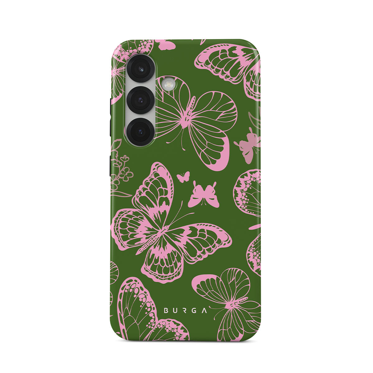 A retro-inspired masterpiece, this Samsung Galaxy S25 phone case features a delightful butterfly print that's sure to take you on a trip down memory lane. Inspired by the carefree spirit of the groovy era, this case reminds you to live your best life with No Regrets and embrace every moment. With this enchanting case design, you'll be ready to spread your wings and fly high, with nothing holding you back.