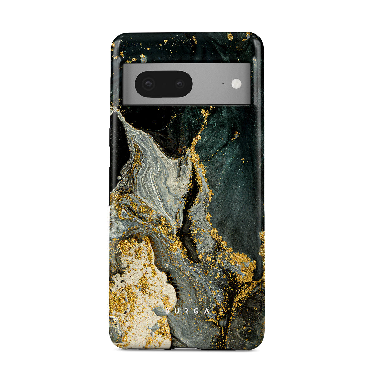 Our cute marble Northern Lights Google Pixel 7 phone case showcases a combination of moss green shades in a marble pattern enriched with golden specks. The asymmetrical design reminding of a star map will add a touch of luxury and mystery to every accessory lover's collection.