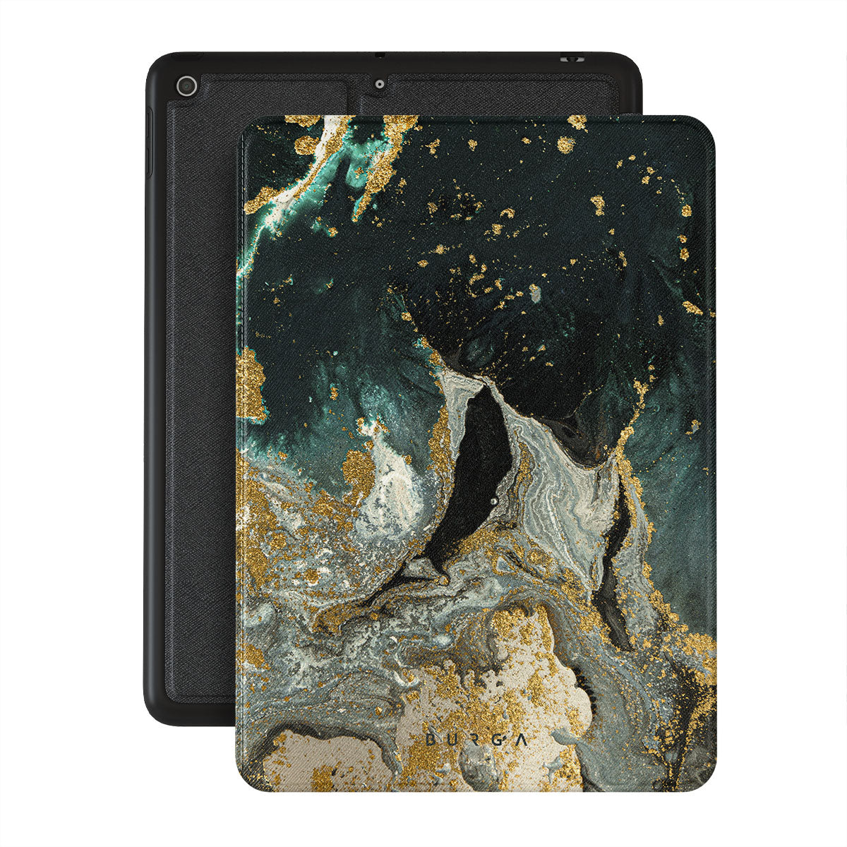Our cute marble Northern Lights iPad 10.2 (9th/8th/7th Gen) folio case showcases a combination of moss green shades in a marble pattern enriched with golden specks. The asymmetrical design reminding of a star map will add a touch of luxury and mystery to every accessory lover's collection.