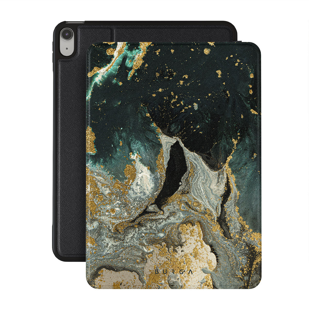 Our cute marble Northern Lights iPad 10.9 (A16/10th Gen) folio case showcases a combination of moss green shades in a marble pattern enriched with golden specks. The asymmetrical design reminding of a star map will add a touch of luxury and mystery to every accessory lover's collection.