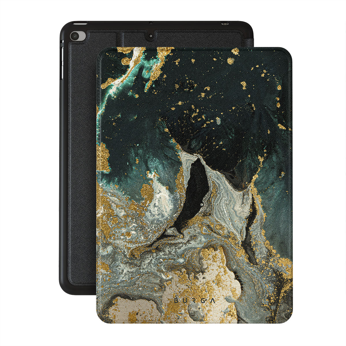 Our cute marble Northern Lights iPad Mini 7.9 (5th Gen) folio case showcases a combination of moss green shades in a marble pattern enriched with golden specks. The asymmetrical design reminding of a star map will add a touch of luxury and mystery to every accessory lover's collection.