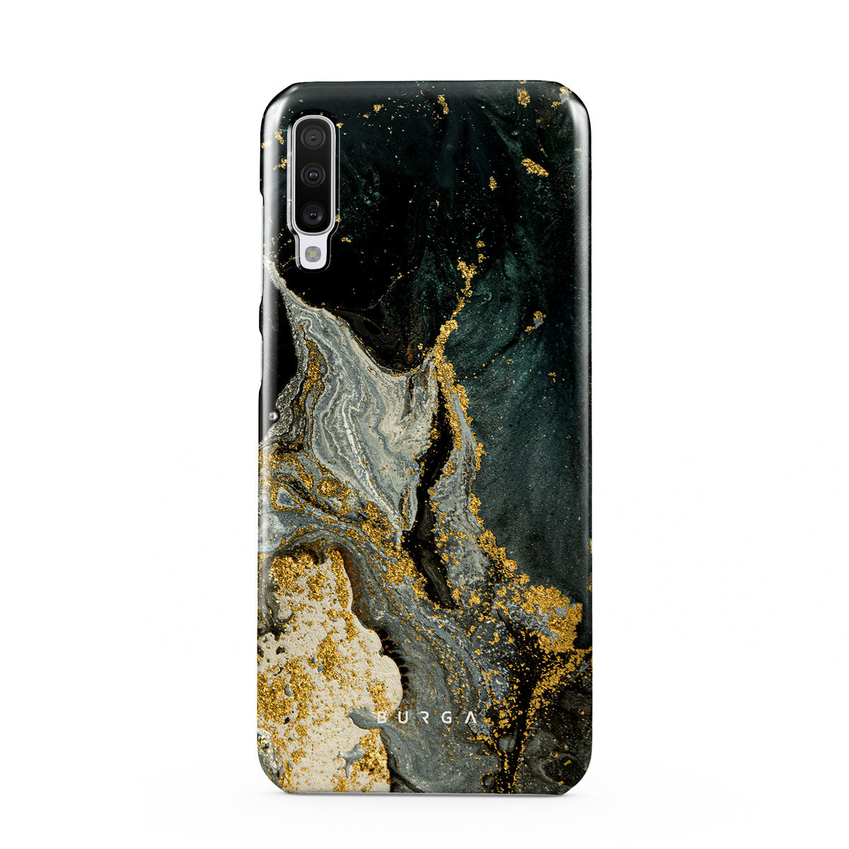 Our cute marble Northern Lights Samsung Galaxy A70 phone case showcases a combination of moss green shades in a marble pattern enriched with golden specks. The asymmetrical design reminding of a star map will add a touch of luxury and mystery to every accessory lover's collection.