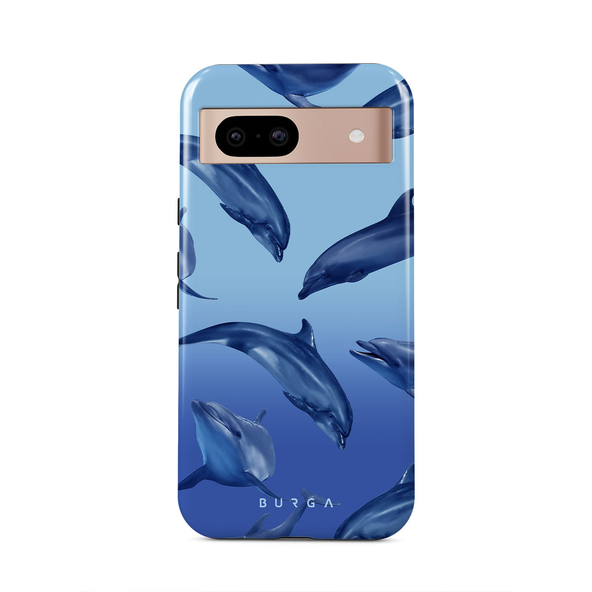 Our Ocean Cowboy Google Pixel 8a phone case features majestic dolphins soaring across a sapphire ocean, symbolizing the untamed beauty and mystery of the deep blue. It's a call to the wild, right in your hands.
